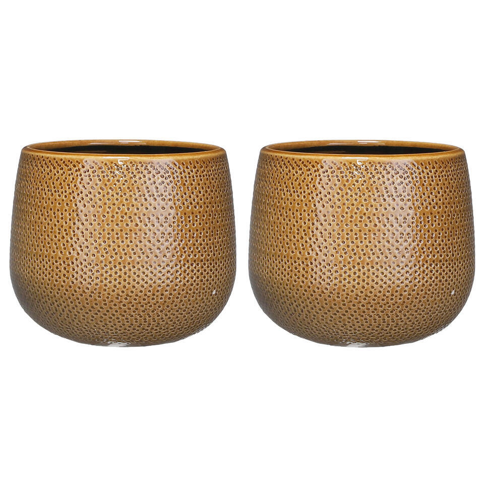 Mica Decorations Bloempot - okergeel - keramiek - ribbel - 18 x 16 cm