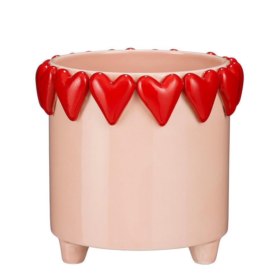 Mica Decorations Cache-Pot avec Cœurs - H18 x Ø21 cm - Rose, Rouge