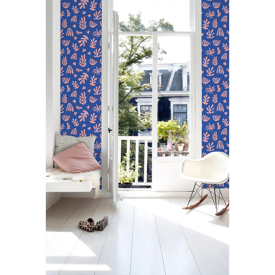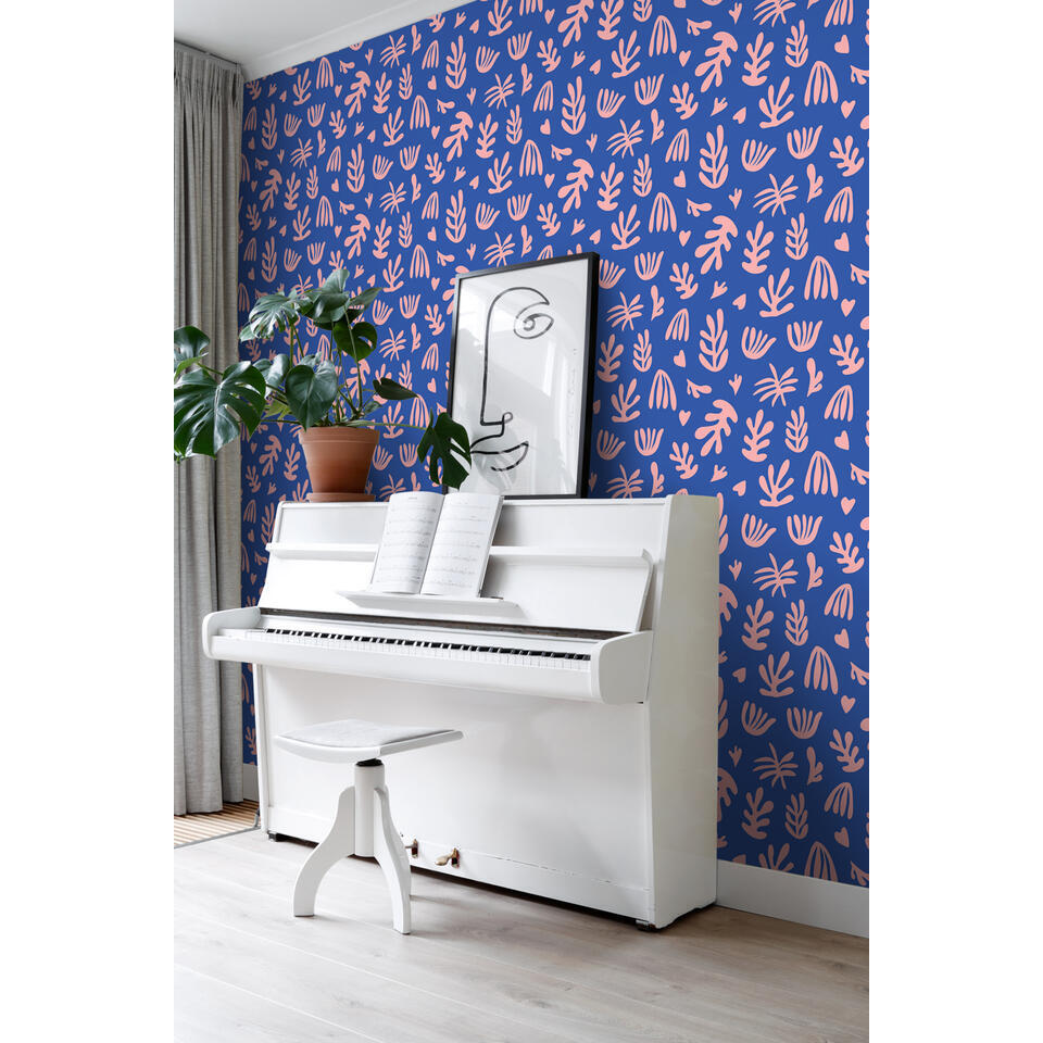 ESTAhome papier peint - plantes dans le style Matisse - bleu et rose