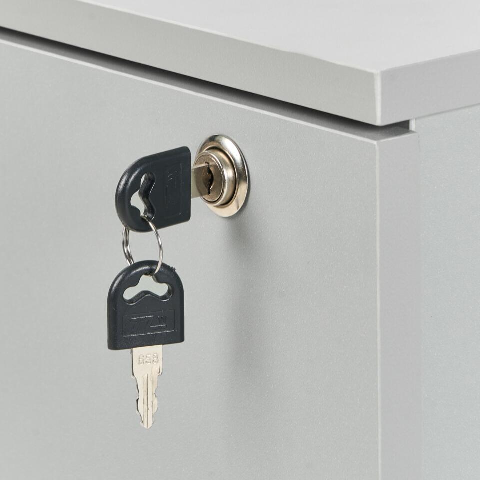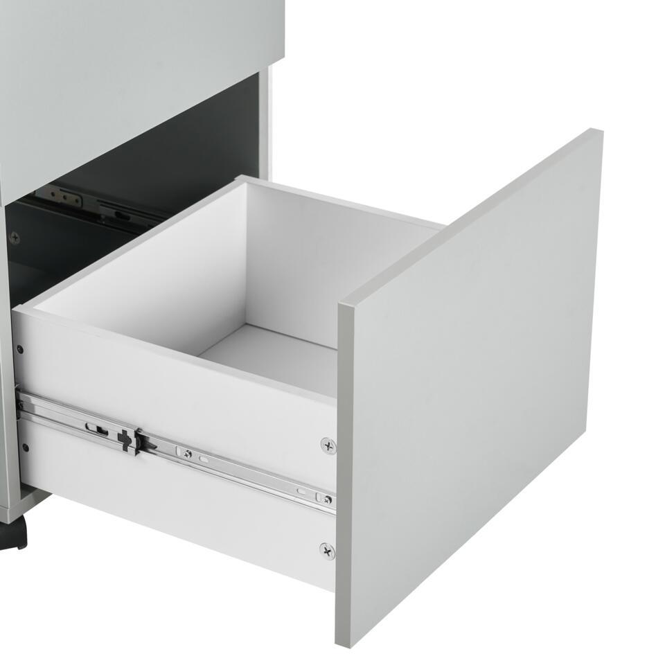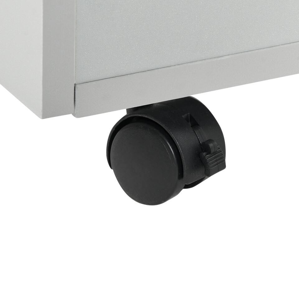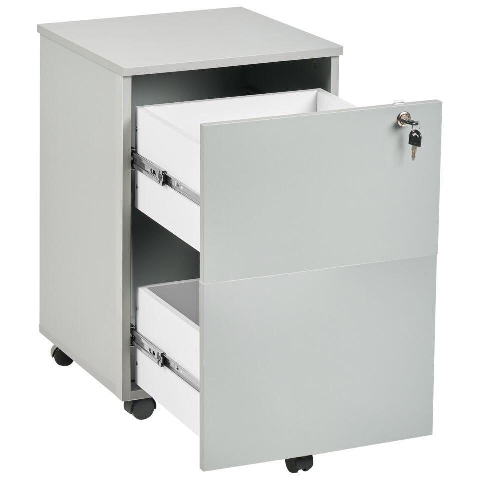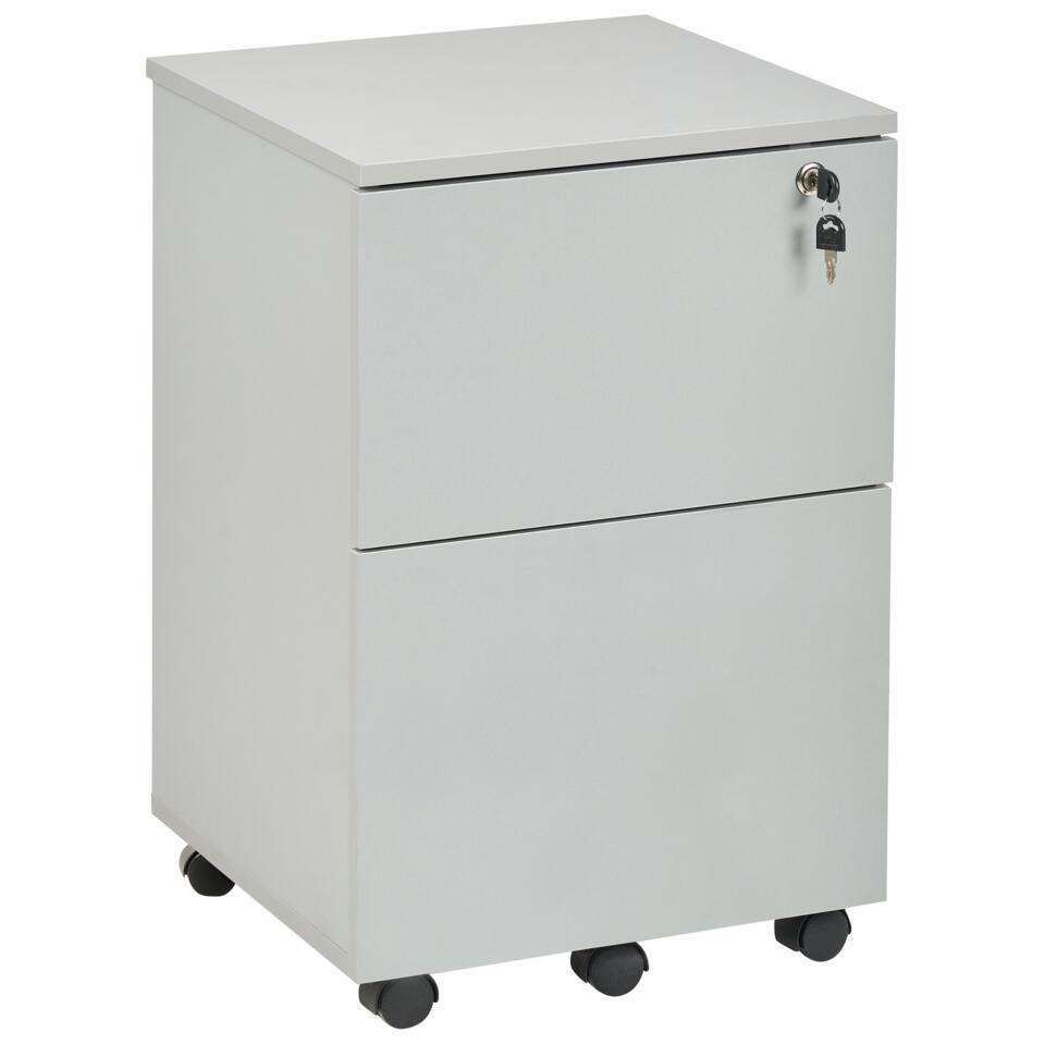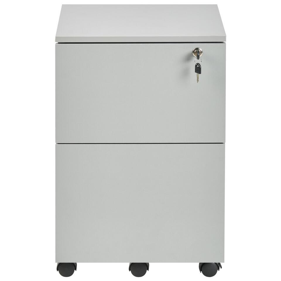 Caisson de bureau à tiroirs. Adoptez l'élégance fonctionnelle avec cette armoire de bureau pratique. Habillée d'un ton gris clair nuancé, cette pièce apporte un raffinement scandinave à votre espace de travail. Les deux tiroirs à fermeture à clé garantissent la sécurité de vos objets essentiels, tandis que l'ajout de roulettes vous donne la liberté de réorganiser votre environnement sans effort. Laissez votre espace de travail incarner le mélange harmonieux du style et de la commodité avec ce havre de productivité mobile.