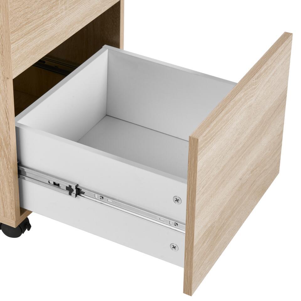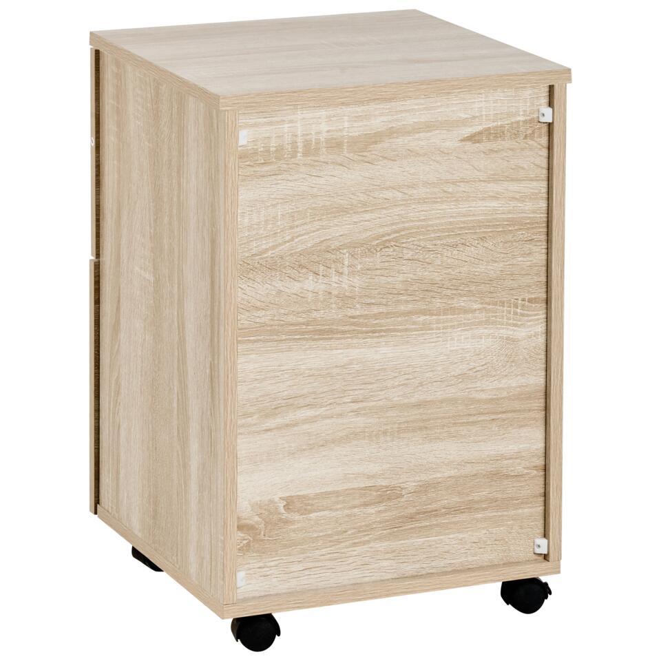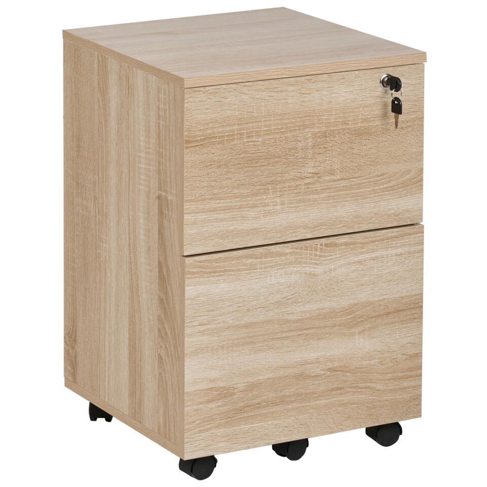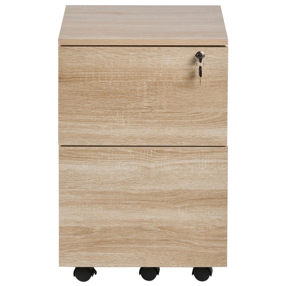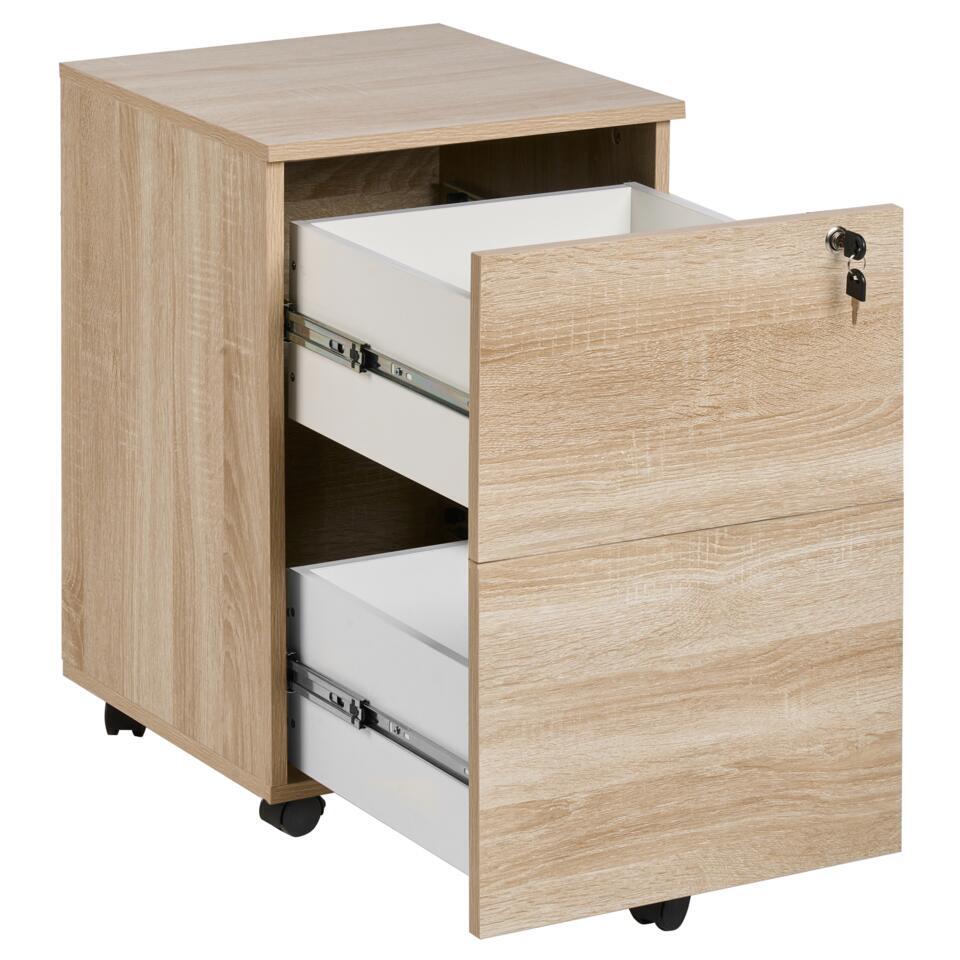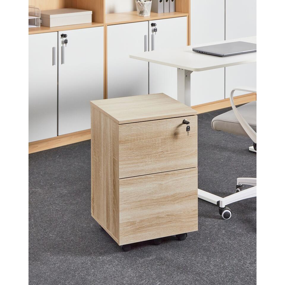 Caisson de bureau à tiroirs. Adoptez l'élégance fonctionnelle avec cette armoire de bureau pratique. Habillée d'un ton marron clair nuancé, cette pièce apporte un raffinement scandinave à votre espace de travail. Les deux tiroirs à fermeture à clé garantissent la sécurité de vos objets essentiels, tandis que l'ajout de roulettes vous donne la liberté de réorganiser votre environnement sans effort. Laissez votre espace de travail incarner le mélange harmonieux du style et de la commodité avec ce havre de productivité mobile.