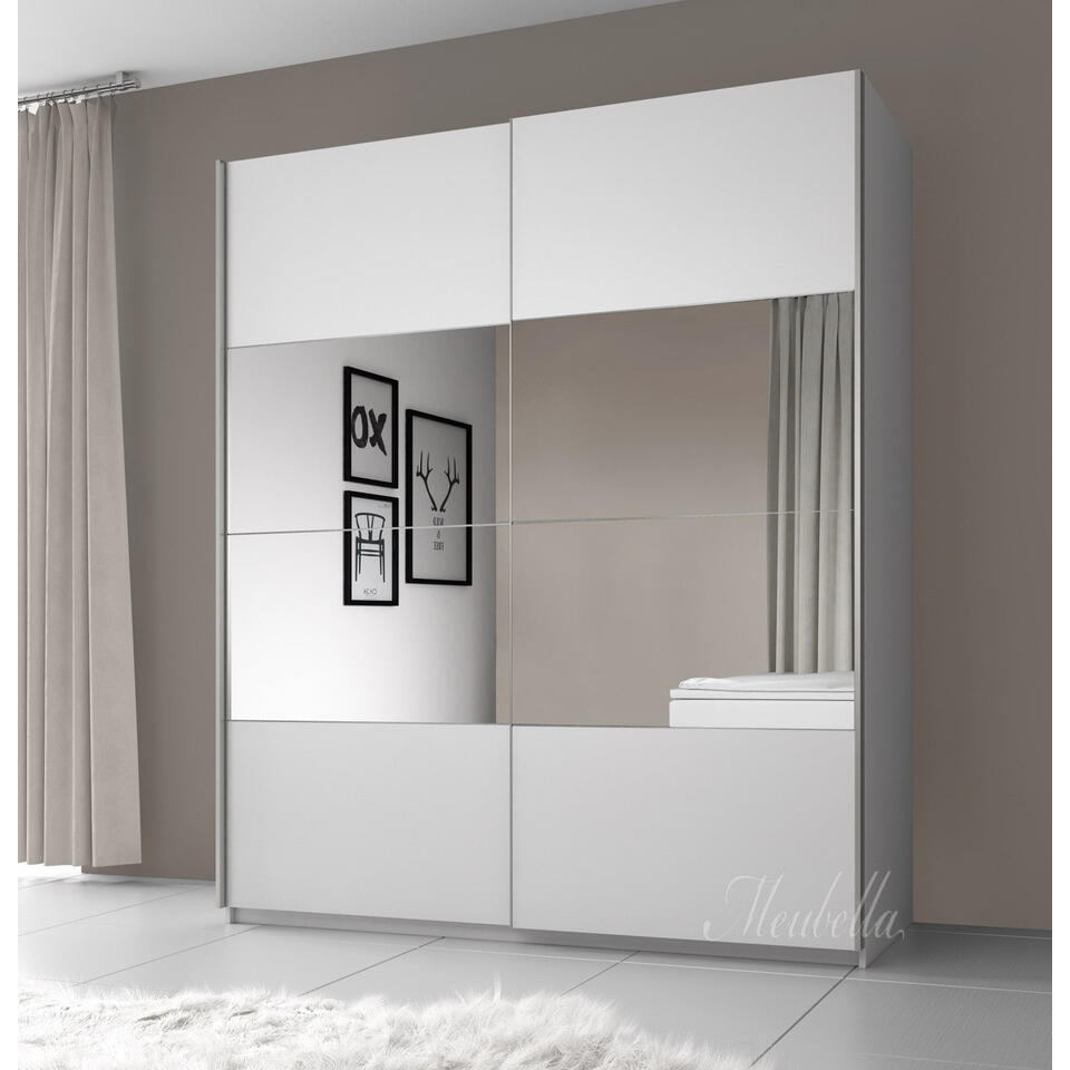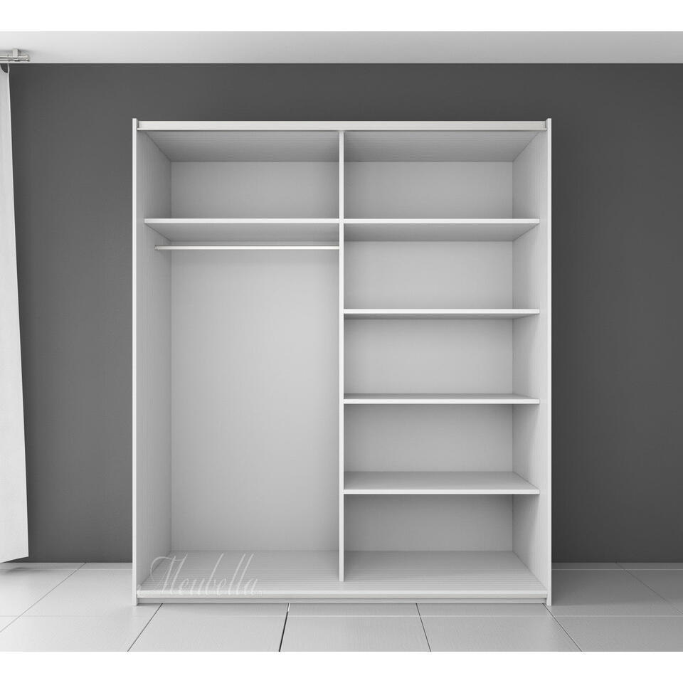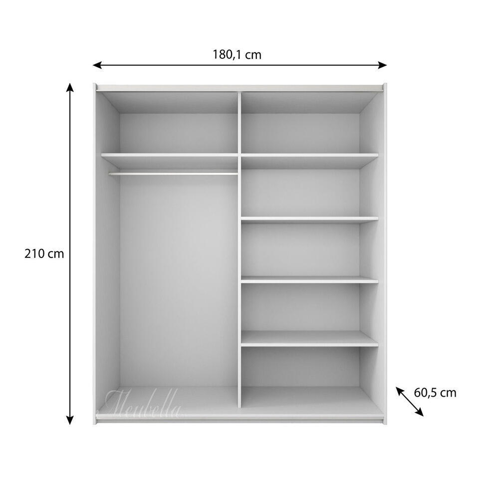 L'armoire Colorado comporte 2 portes coulissantes avec miroirs. L'intérieur se compose d'une tringle à vêtements et de 6 compartiments de rangement. L'armoire est fabriquée en bois mélaminé robustes. Dimensions : 180x61x210 cm