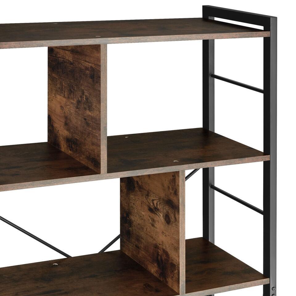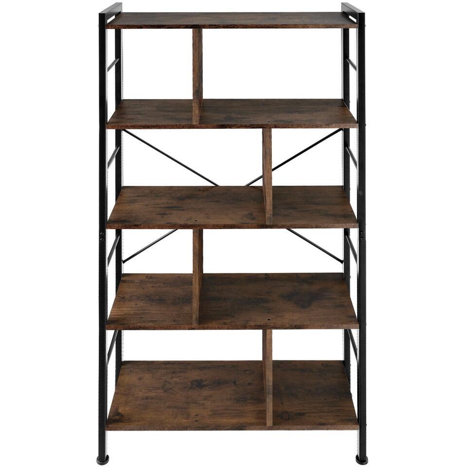 tectake Étagère Charleston 75,5x30x155cm, Bois Foncé Industriel, Rustique