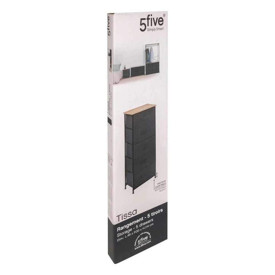 5Five Opbergkast - 5x mand - 45x30x114cm - hout/stof donkergrijs
