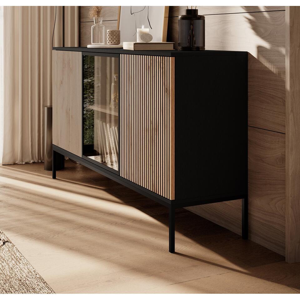 Meubella Buffet Legend - Noir mat - Chêne - 154 cm