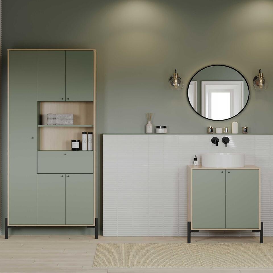 Armoire de toilette Elisa - 32.90x83.60x201.50 cm - Vert menthe/aggloméré