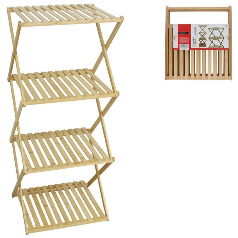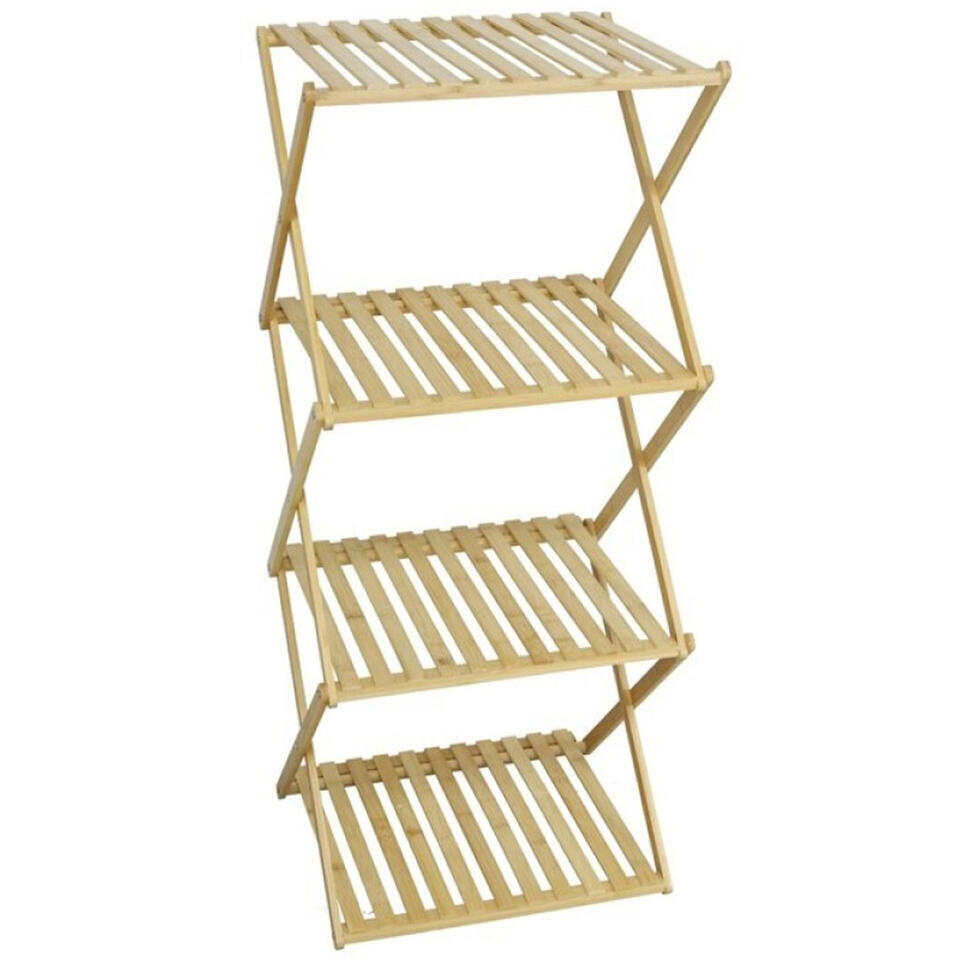 Gerimport Etagere/organiseur pour salle de bains/cuisine en bambou. Cette etagere pliante a quatre niveaux attire naturellement l'attention dans votre interieur. Que vous l'utilisiez pour les serviettes dans la salle de bains, les plantes dans le salon ou les fournitures dans la cuisine, cette etagere allie un design aere a un rangement pratique. Et lorsque vous avez fini de l'empiler ? Il suffit de le replier et de le ranger de maniere compacte. Frais, fonctionnel et toujours pret pour un nouvel emplacement ! Dimensions : environ H93,5 x L40 x P33,5 cm.
