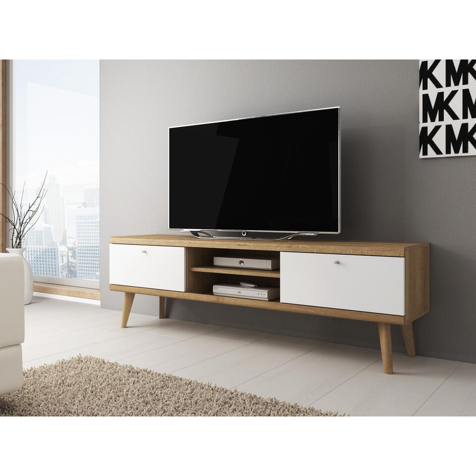 Meubella Meuble TV Primavera - Blanc - Chêne clair - 160 cm