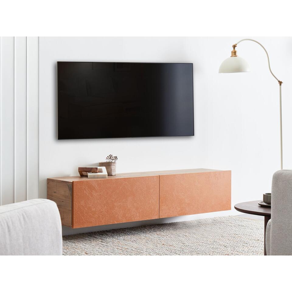 Meuble multimédia suspendu pour téléviseur jusqu'à 55 pouces. Maximisez votre espace avec ce meuble TV mural, fabriqué dans un matériau durable et nécessitant peu d'entretien. Son design minimaliste et universel s'harmonise parfaitement avec différents styles d'intérieur, ce qui lui permet de s'intégrer dans n'importe quel salon. L'espace de rangement dissimulé permet d'organiser soigneusement les livres, les câbles et les jeux vidéo, tandis que la construction robuste garantit une fonctionnalité durable. Idéal pour les téléviseurs de différentes tailles, il allie style et praticité.