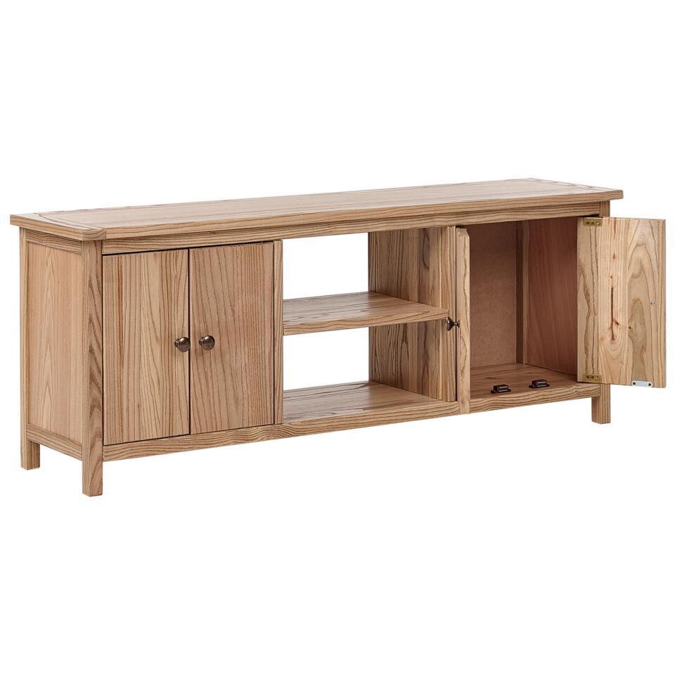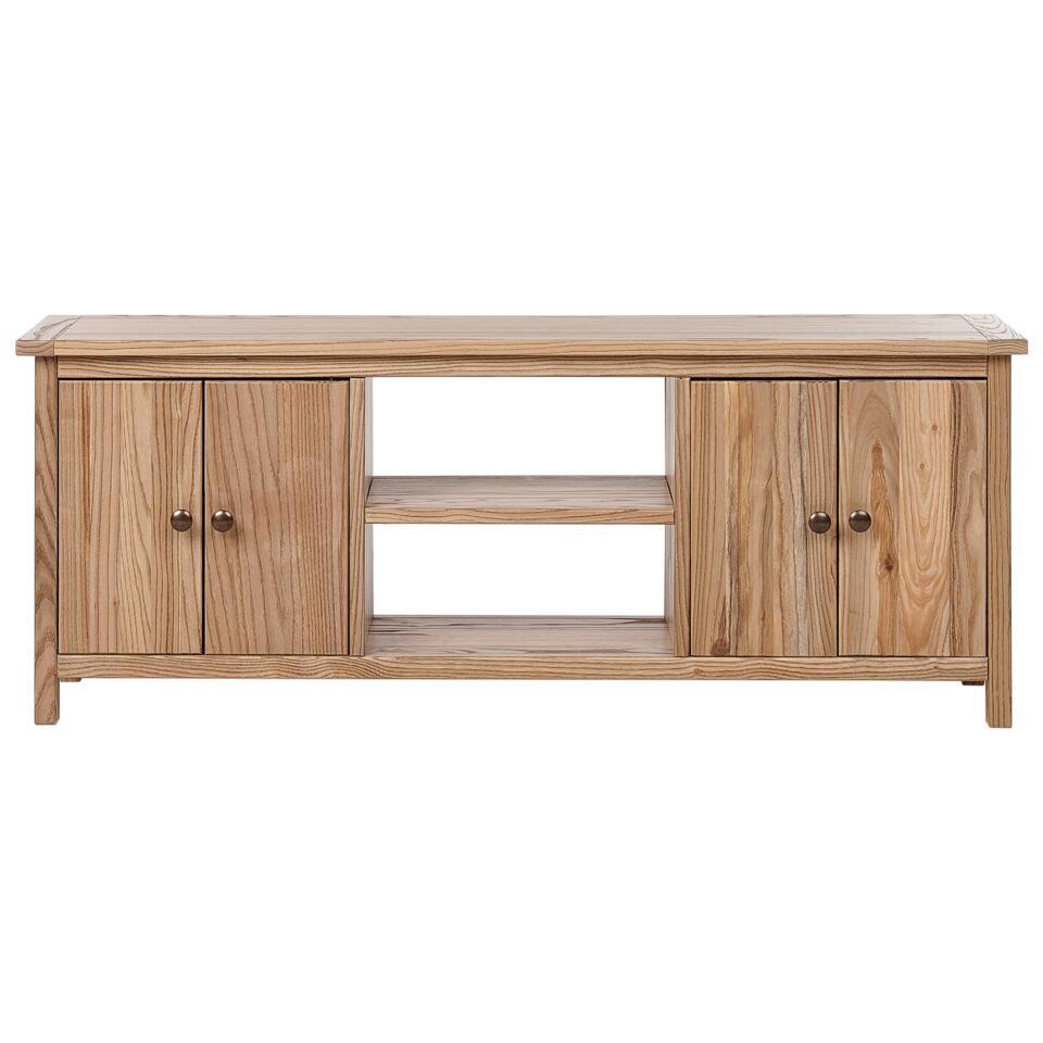 Meuble TV rustique avec rangement. Ce meuble TV en bois de sassafras massif apporte un charme rustique à votre espace de vie. Fabriqué à partir de matériaux robustes avec des nœuds visibles, il équilibre à la fois le style et la fonction. Les deux unités de rangement avec portes offrent un espace caché pour les appareils électroniques ou tout autre objet que vous souhaitez garder à l'abri des regards, tandis que les deux étagères ouvertes sont idéales pour exposer des appareils ou des objets de décoration. Grâce à son design robuste et à son attrait intemporel, ce meuble TV s'intègre parfaitement à une grande variété d'intérieurs. Il est parfait pour les salons ou les espaces de divertissement.