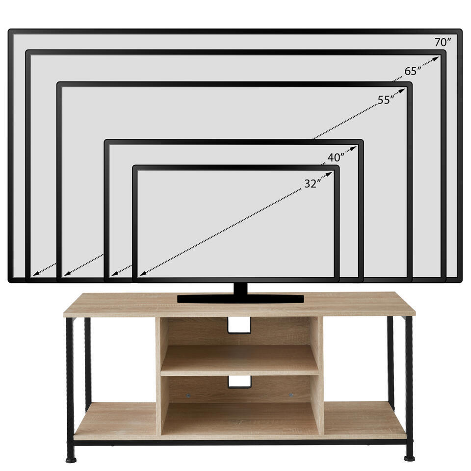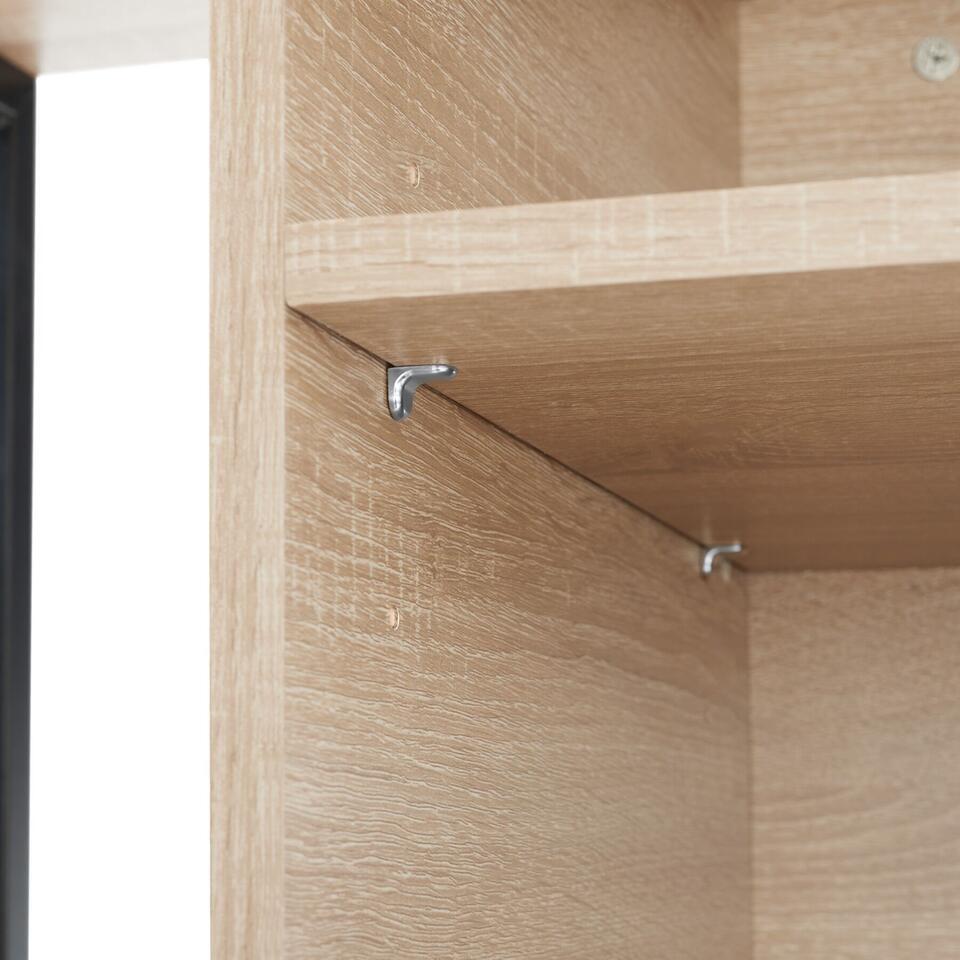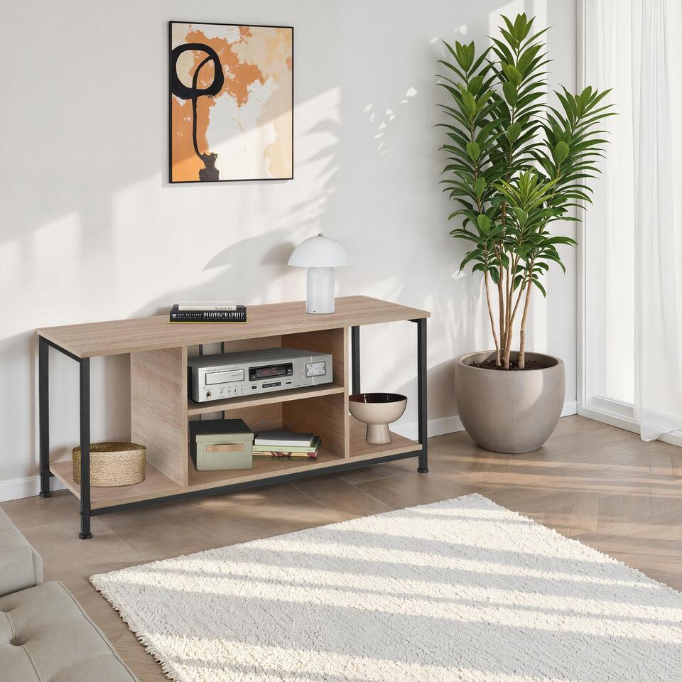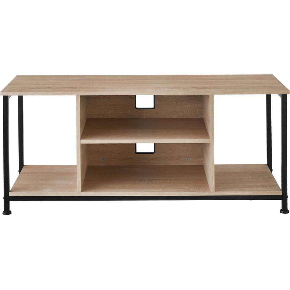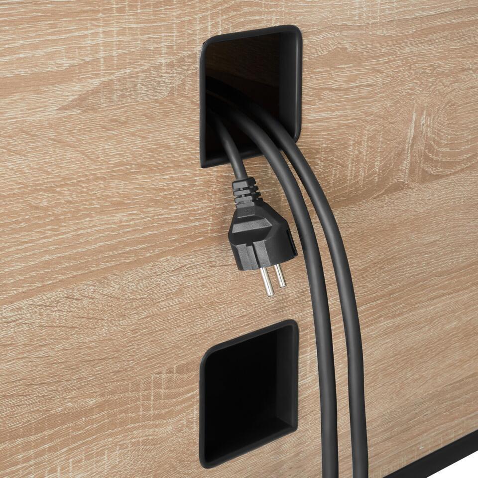 L'aspect anguleux et le contraste de couleurs entre les surfaces chaudes en bois et le cadre froid en métal distinguent cette étagère pour téléviseur fonctionnelle au look typiquement industriel. Quatre compartiments ouverts offrent beaucoup d'espace de rangement. L'étagère au milieu se laisse régler à trois hauteurs différentes. Deux encoches carrées sur le panneau arrière de ce banc pour téléviseur sans ornements inutiles assurent un passage de câbles bien organisé. Le revêtement de protection en mélamine, la bonne capacité de charge et les pieds réglables en hauteur font leurs preuves au quotidien et contribuent à la longue durée de vie de l'élégant meuble bas.