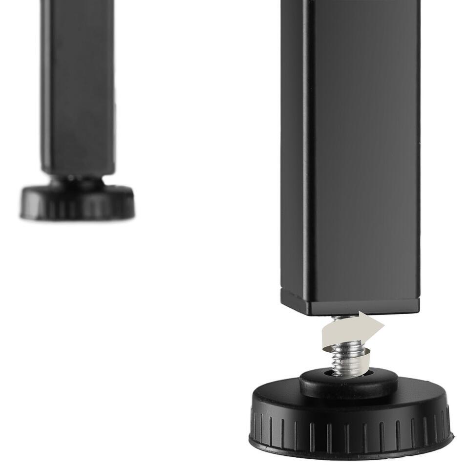 Le remarquable meuble pour téléviseur Galway de tectake est un élément d'aménagement qui séduit par son charme industriel brut. Son look particulier repose sur le contraste entre l'acier dur et le bois accueillant, dont le grain fin ajoute une touche d'élégance. Deux compartiments ouverts et un autre compartiment dissimulé derrière une porte magnétique facile à fermer et dotée d'un joli motif de lamelles offrent un espace de rangement généreux. La construction facile à entretenir est également pourvue de quatre pieds réglables en hauteur et de deux encoches pratiques pour le passage des câbles dans le panneau arrière. Un meuble sans fioritures au design clairement défini : l'élégante table pour téléviseur Galway de tectake.