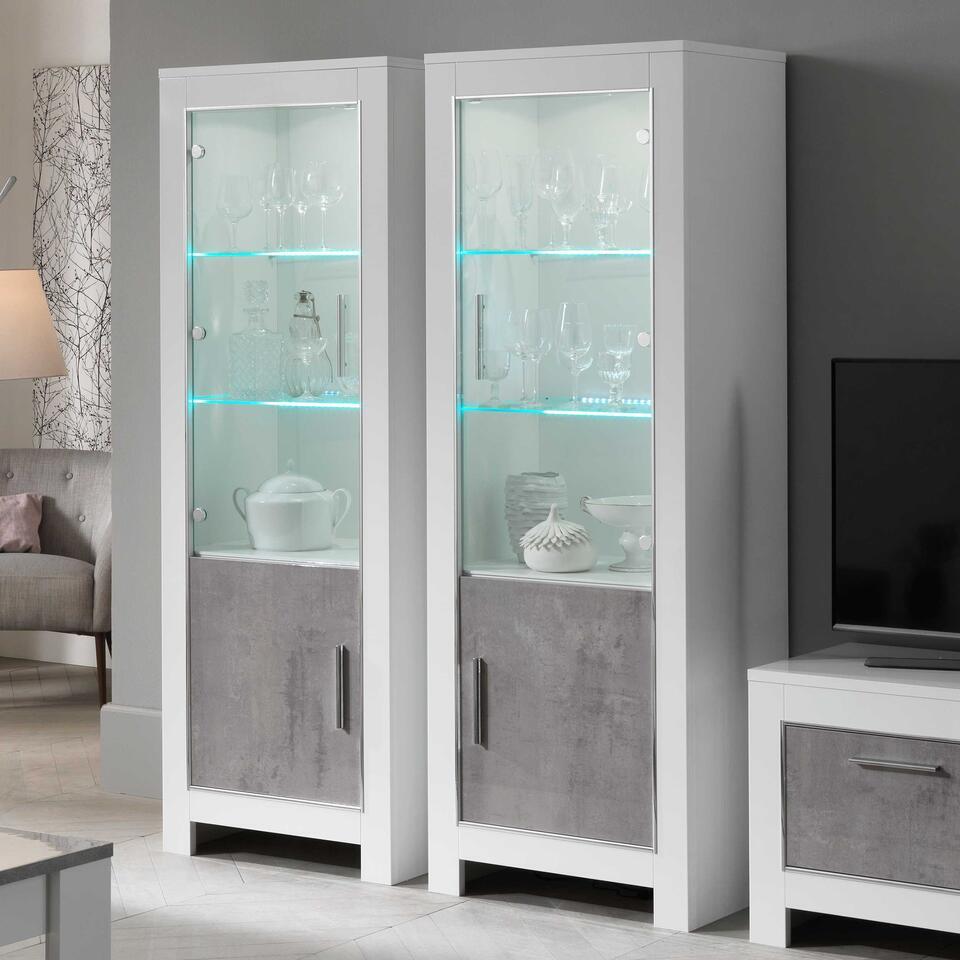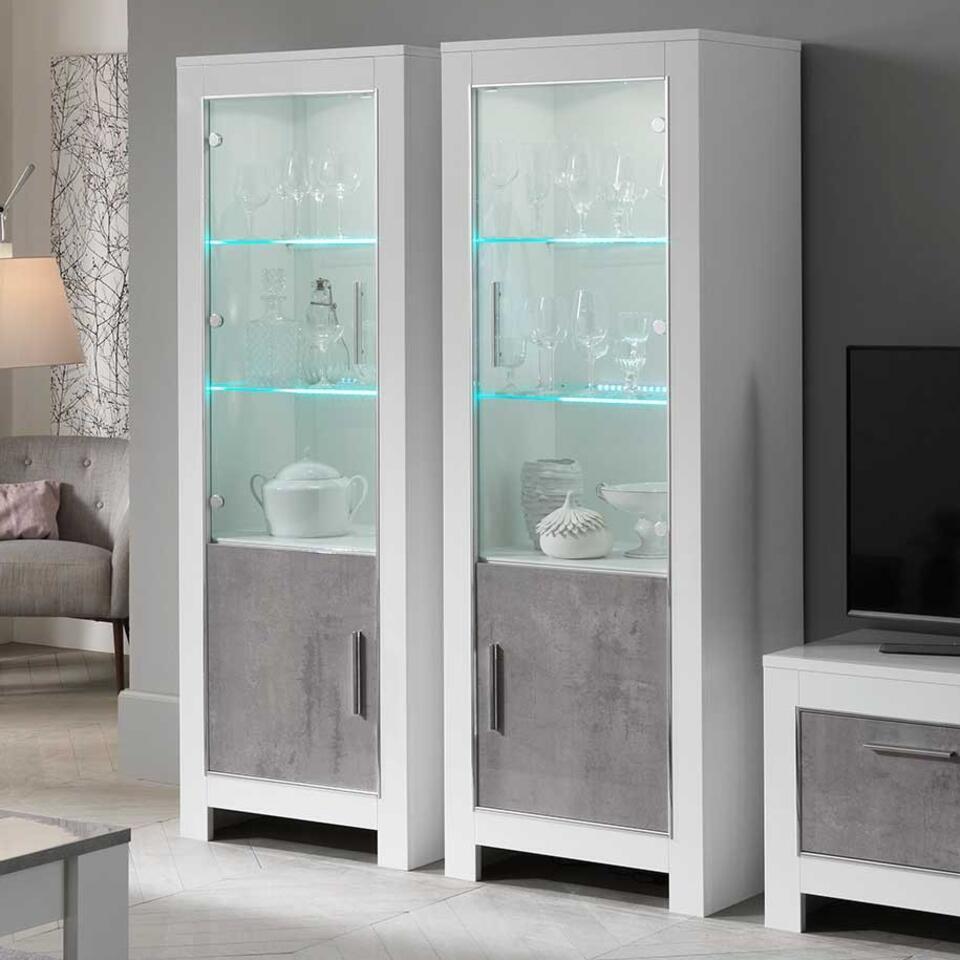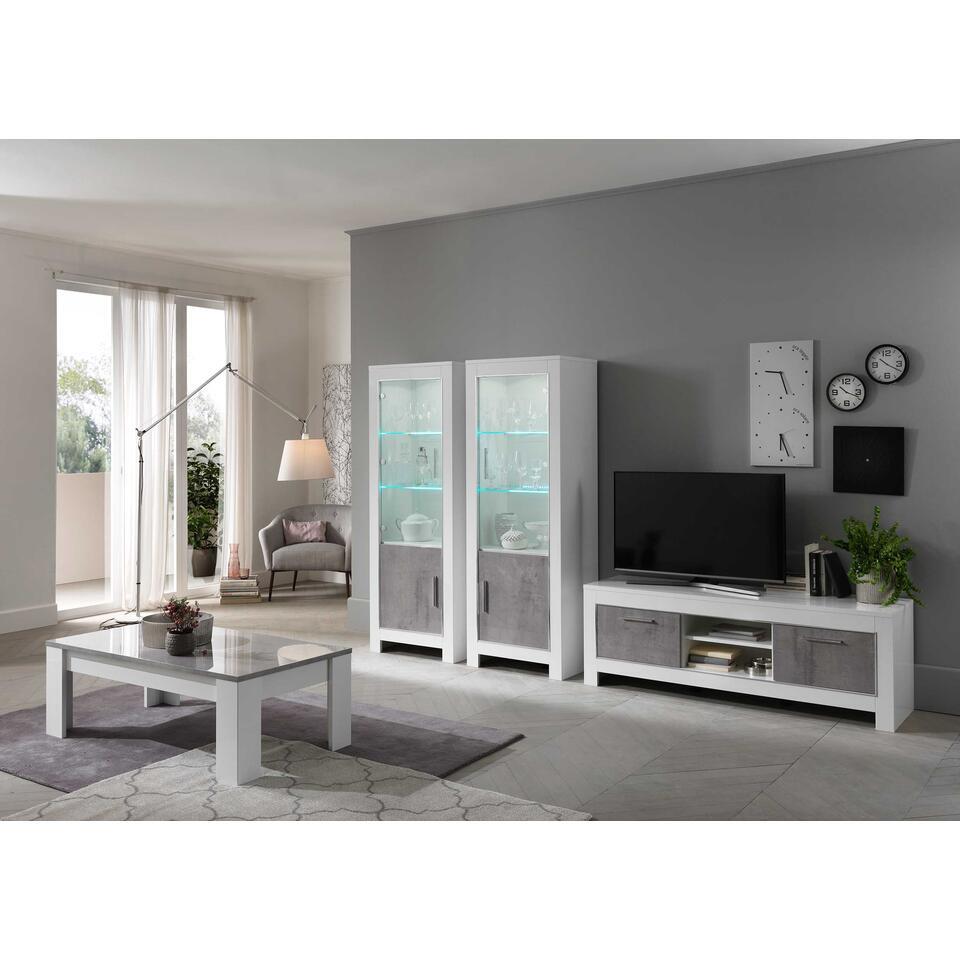 Les meubles de la collection Modena ont une finition en blanc brillant/béton et constituent le choix idéal si vous souhaitez donner à votre séjour un aspect moderne.
