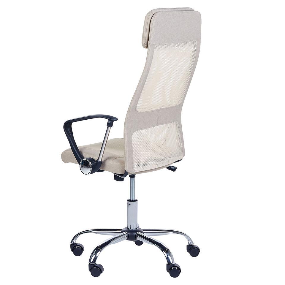 Chaise pivotante moderne. Rester assis longtemps devant votre bureau peut être fatiguant, il est donc indispensable de disposer d’une chaise de bureau confortable. Ce siège pivotant associe un élégant tissu beige à une maille respirante et durable, fabriqués en polyester. Le mécanisme à bascule soulage les disques intervertébraux et vous offre un concept de mouvement actif. La chaise ergonomique a un appui-tête large et intégré, une base pivotante à 360 ° et un siège réglable en hauteur en continu.