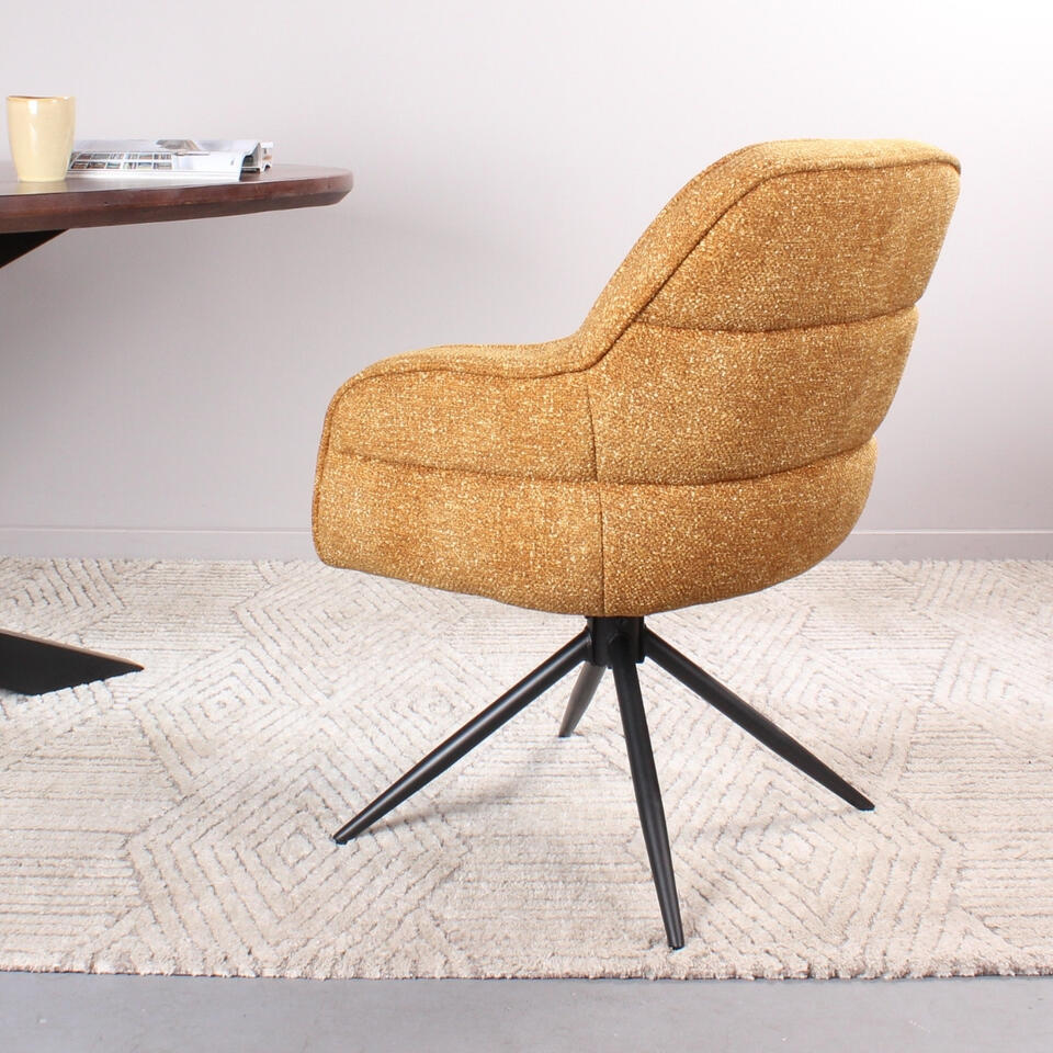 Le fauteuil De Loisa est une chaise élégante et confortable au design moderne. Le dossier est doté de trois coutures horizontales subtiles, qui ajoutent une touche raffinée à l'ensemble. Cette chaise est recouverte d'un tissu luxueux qui est doux au toucher.