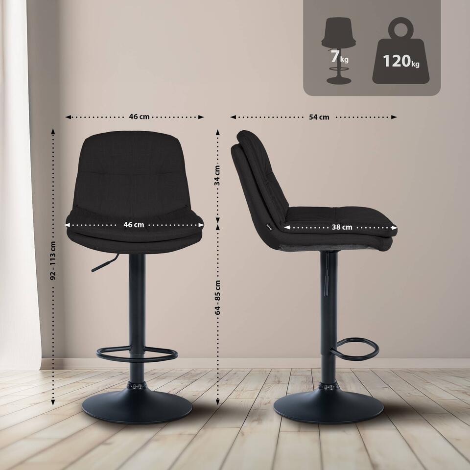 CLP Tabouret de bar Laurel Noir Cadre - Tissu - Noir