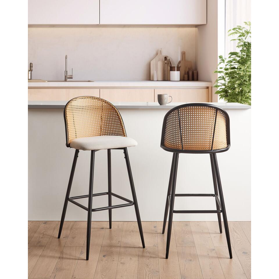 Lot de 2 tabourets de comptoir à dossier tressé viennois. Découvrez une danse intemporelle du design avec ces deux merveilles en métal. Fabriquées avec un cœur industriel, ces chaises ont une âme rétro. Laissez-vous bercer par le confort des sièges en tissu, tandis que le large dossier orné de galons viennois ajoute une touche d'allure vintage. L'élégance pratique règne grâce aux embouts de pieds qui protègent vos sols. Mettez en valeur votre environnement grâce à un mélange parfait de style et de charme intemporel.