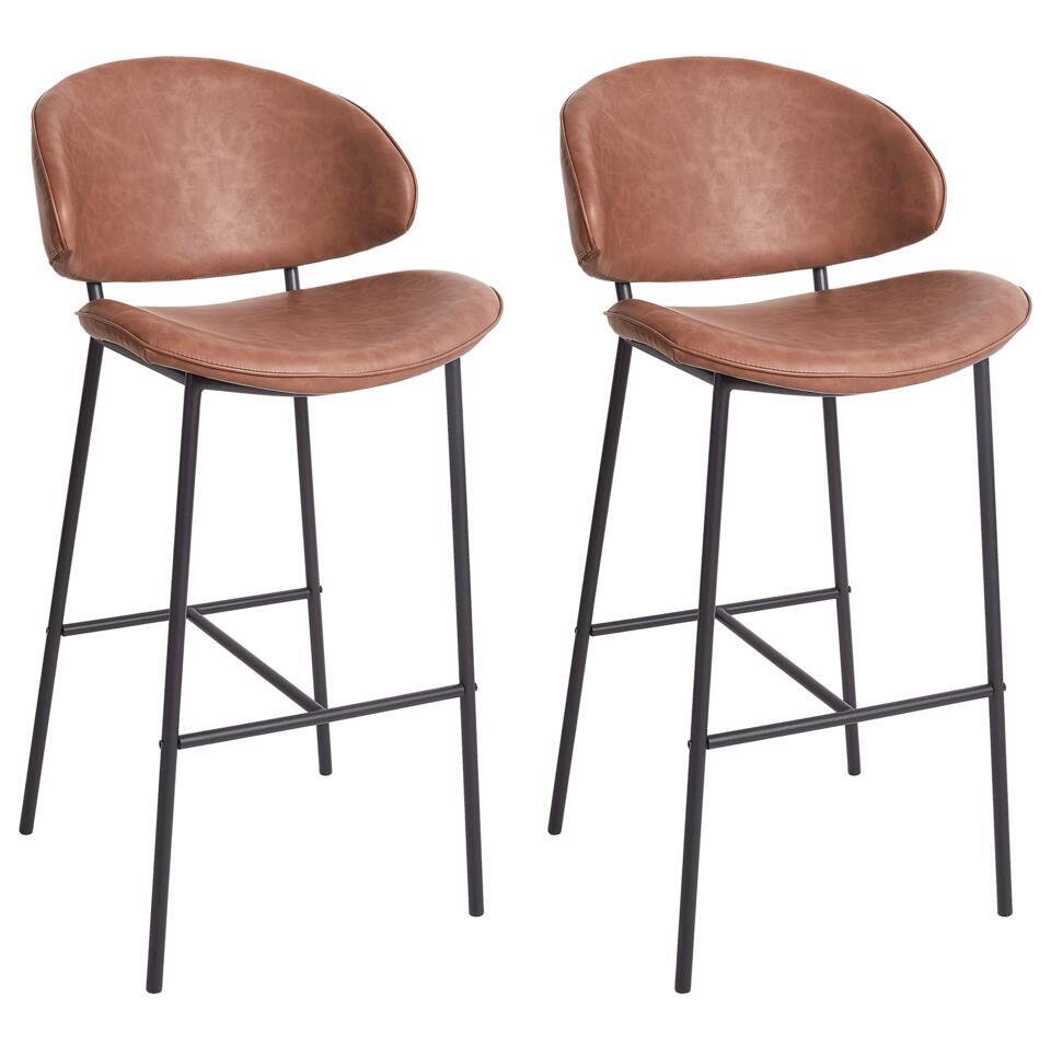 Lot de 2 chaises de bar KIANA Cuir PU Marron