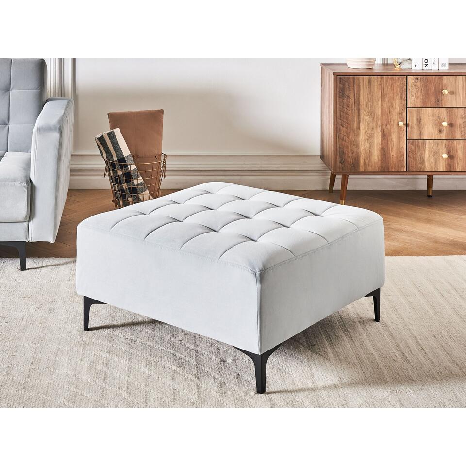 Ottoman rembourré élégant. Ce pouf ottoman moderne constitue un ajout parfait à un canapé du même modèle. Le revêtement en velours et les pieds noirs lui confèrent une touche raffinée. Ce repose-pieds s'accorde bien avec toutes les couleurs intérieures. Combinez-le avec d'autres pièces de la même collection pour adapter la disposition des sièges à votre espace de vie.
