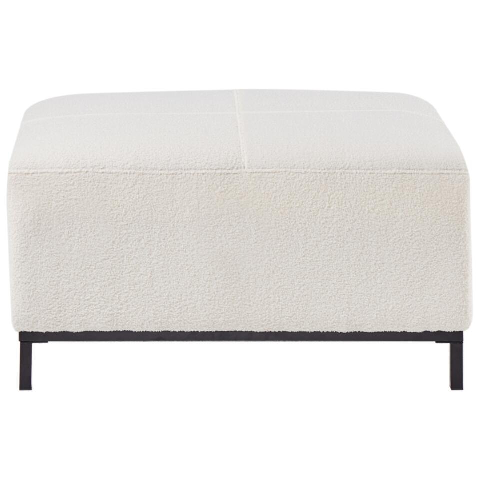 Ottoman pour canapé. Ce pouf est le compagnon idéal d'un ensemble de canapé ottoman : simple, moderne et confortable. Il est robuste, grâce à sa structure en bois massif, ses pieds en acier inoxydable et son rembourrage en tissu bouclé doux. L'assise large et densément rembourrée est fabuleusement confortable.