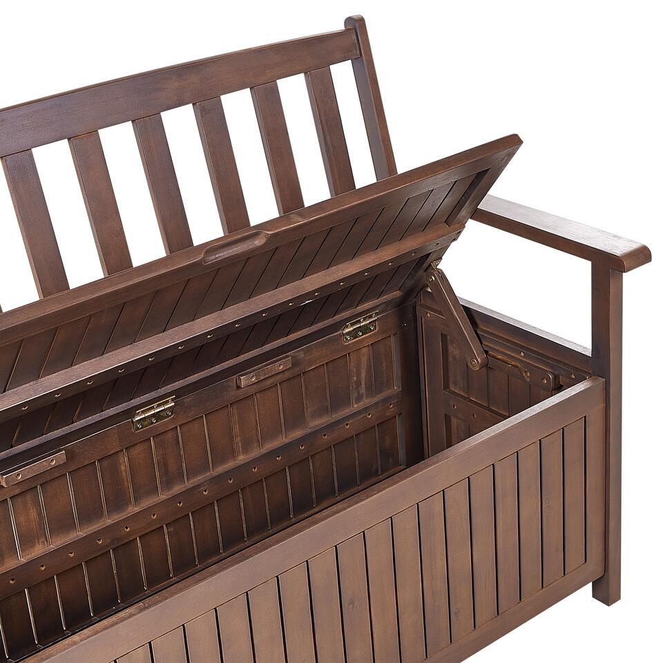 Banc d'extérieur. Rehaussez l'aspect de votre espace extérieur avec ce banc en bois. Fabriqué en bois d'acacia de haute qualité, il est facile à entretenir. Le banc est équipé d'un grand rangement caché sous le siège. Il peut être utilisé pour ranger les outils de jardinage ou les housses de meubles. Son assise est recouverte d'un coussin long pour plus de confort. Le design minimaliste d'inspiration scandinave de la pièce en fait un ajout parfait à tout jardin.