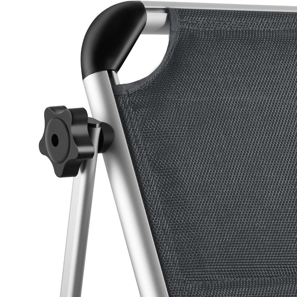 Le bain de soleil Lorella de tectake présente un design intelligent qui vous permet de profiter pleinement de l'été. Son niveau de confort élevé est garanti par sa surface de couchage rembourrée et respirante, un appui-tête confortable et amovible si nécessaire, et une poche latérale pratique. Sa structure solide en aluminium résistante aux intempéries est combinée à un revêtement en fibres synthétiques robuste et déperlant afin d'obtenir une chaise longue extrêmement robuste et facile d'entretien. Son pare-soleil réglable en continu, son dossier flexible pouvant être réglé sur six inclinaisons et ses deux poignées de transport vous permettent enfin de vous relaxer comme vous voulez, où vous voulez.