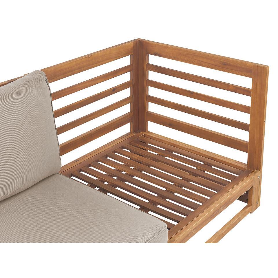 Canapé d'extérieur pour 2 personnes. Ce canapé de jardin est composé d'éléments modulaires qui peuvent être assemblés ou utilisés comme sièges séparés. Fabriqué en acacia dans un beau ton de bois clair, il est parfait pour les espaces de détente extérieurs et facile à nettoyer. Les coussins épais de l'assise et du dossier, dans une teinte taupe, combinés à un cadre confortable et discret, attirent tous les regards dans un jardin ou un patio moderne.