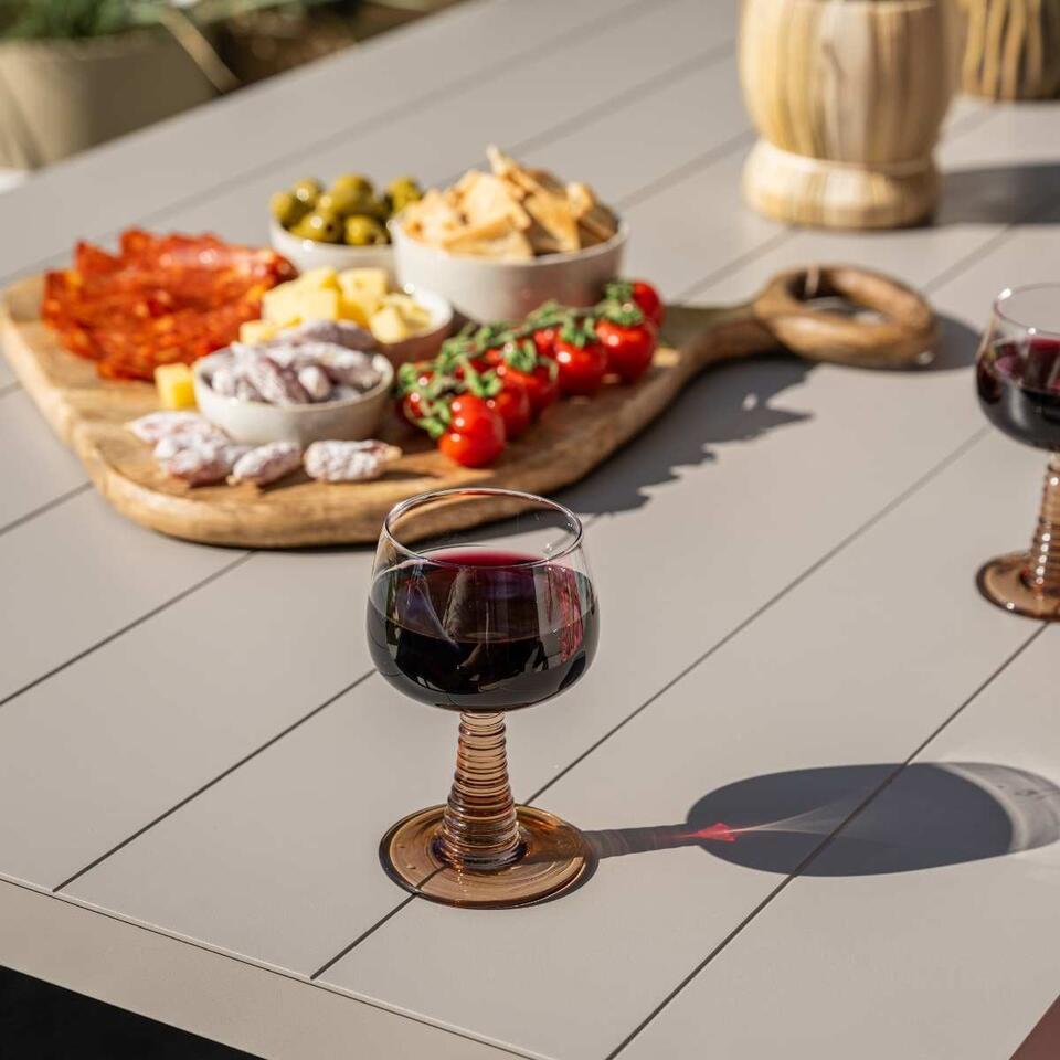 L'ensemble de salle à manger Senja est fabriqué en aluminium sans entretien et résistant aux intempéries, avec un revêtement en poudre durable de couleur taupe. Cela rend l’ensemble facile à entretenir. Si l'ensemble devient sale, par exemple à cause des éclaboussures d'eau de pluie, vous pouvez facilement le nettoyer avec du savon vert et un chiffon doux. Cet ensemble de salle à manger polyvalent peut être agrandi avec une chaise de salle à manger et un banc de sport. La table présente une structure à lattes et de larges pieds plats, ce qui confère à l'ensemble un design épuré et contemporain. De plus, l'ensemble est doté de capuchons de pieds réglables, ce qui facilite la mise à niveau de l'ensemble.