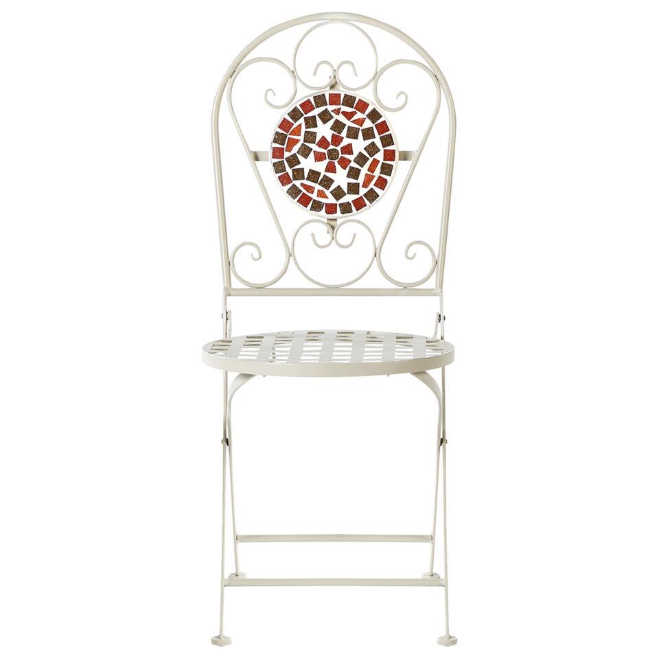 Table et chaises avec motif mosaïque. Ajoutez de l'élégance à votre jardin avec ce charmant ensemble bistrot, composé d'une table et de deux chaises pliantes en blanc universel. Fabriqué en métal robuste, cet ensemble garantit stabilité et longévité. Le plateau de la table et les dossiers des chaises présentent un effet mosaïque sophistiqué, ajoutant une touche de raffinement à tout espace extérieur. Avec son style rétro, cet ensemble embellit sans effort le décor de votre patio ou de votre jardin.