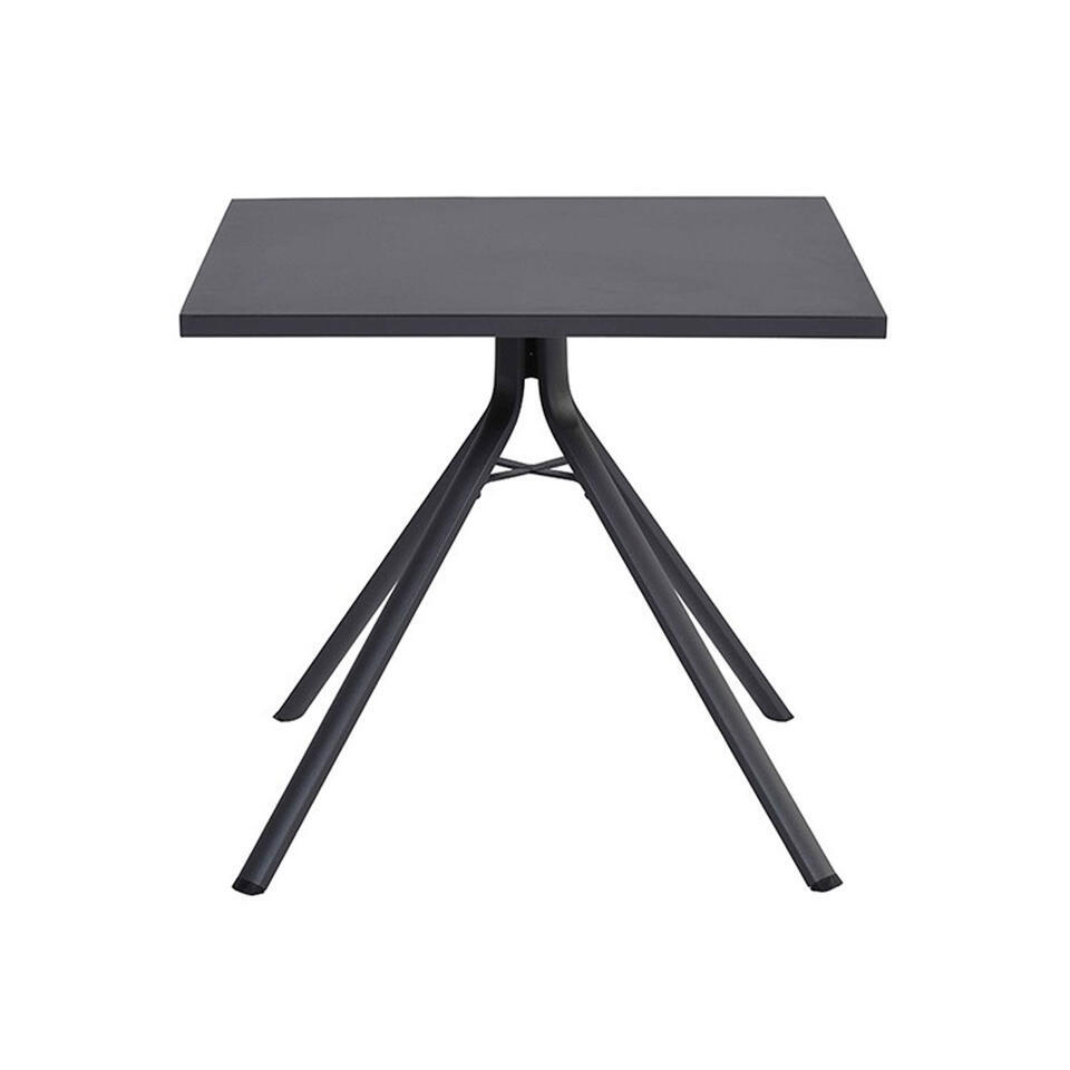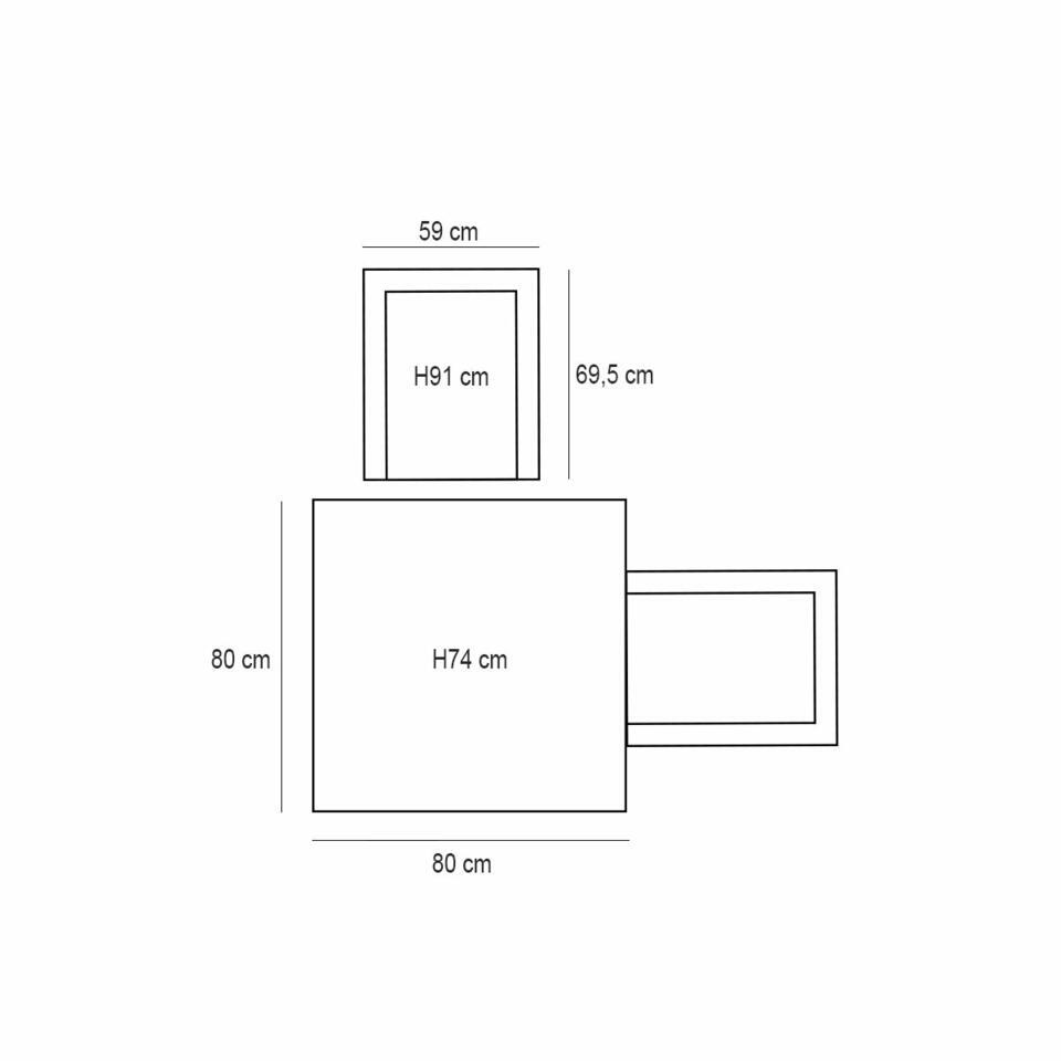 Les dimensions du fauteuil de salle à manger sont L 59 x P 69,5 x H 82,5 cm avec rotin naturel en osier avec structure en aluminium et coussin en polyester gris foncé. Les dimensions de la table de jardin sont L 80 x L 80 x H 72 cm avec un cadre en aluminium recouvert d'un revêtement en poudre mat de couleur noir carbone. Une vaste collection d'ensembles de jardin se trouve dans la catégorie mobilier de jardin. Mobilier de jardin de différentes belles marques.