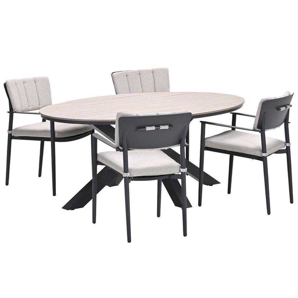 Ensemble de jardin Dane - Tulli - gris foncé - 180x115 cm - 5 pièces