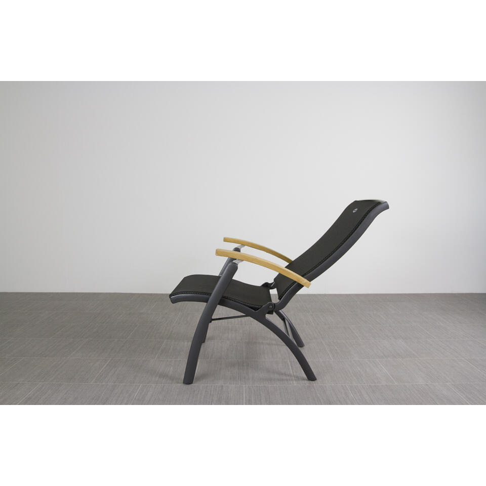 De Da Vinci tuinstoel heeft net als de tuintafel een aluminium frame. Tussen dit frame is een textileen doek gespannen. Dit doek zorgt ervoor dat de Da Vinci tuinstoel erg lekker zit. De armleuningen zijn gemaakt van teak hout en matchen daarom erg goed bij de South Wales tuintafel.