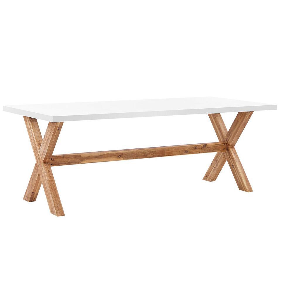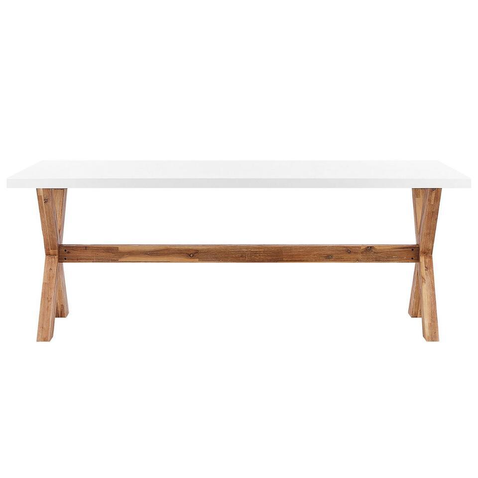 Set de jardin 6 places chaises et table en fibre-ciment et bois d'acacia. Rehaussez le look de votre jardin avec cet ensemble de meubles uniques en leur genre. Ce set de jardin se compose d'une table spacieuse et de 6 chaises assorties. Le plateau de la table est en fibre-ciment tandis que les chaises sont en acier et matière synthétique. Le design brut de cette salle à manger d'extérieur est complété par des pieds en bois d'acacia massif qui assurent la stabilité de la table ainisi que des chaises en leur conférant un teint clair et chaleureux. Avec son allure épurée et scandinave, ce superbe set de jardin s'intégrera sûrement dans chaque espace minimaliste, urbain et moderne. Ce joli ensemble de meubles de jardin peut accueillir confortablement jusqu'à 6 personnes.