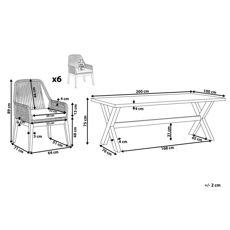 L`offre inclue: 1 x Table, 6 x Chaise, 6 x Coussin d'assise