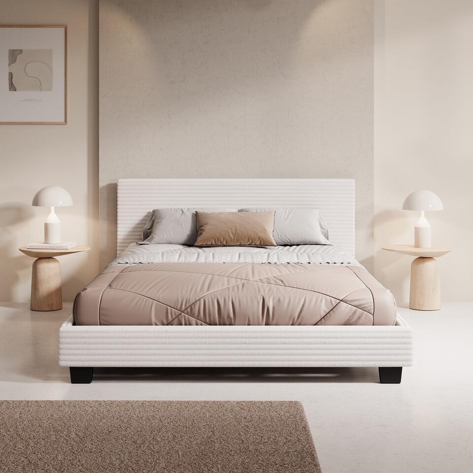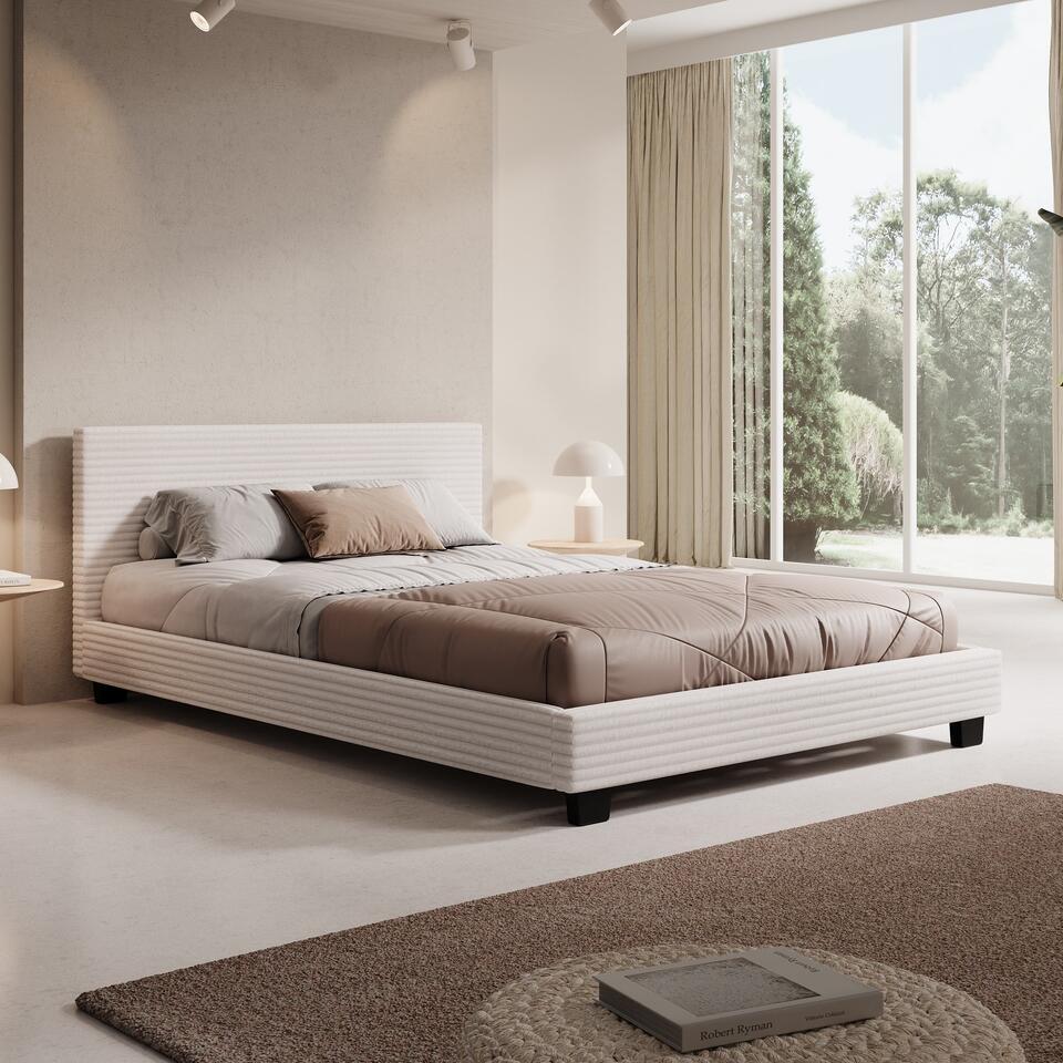 Meubella Lit double George - Tissu côtelé beige - 140 x 200 cm