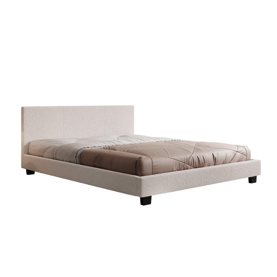 Meubella Lit double George - Tissu Teddy blanc - 160 x 200 cm