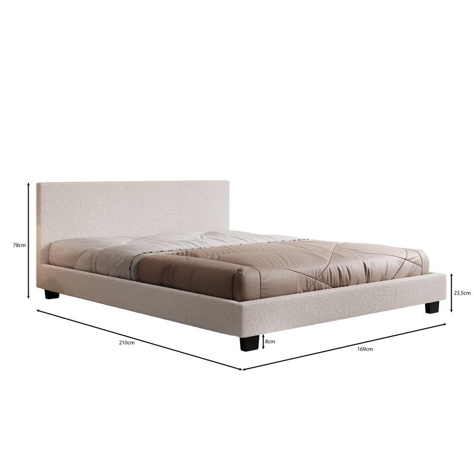 Le lit double George peut accueillir deux personnes. Il est fabriqué en tissu peluche blanc et est livré avec un sommier à lattes (adapté à un matelas de 160 x 200 cm). Le matelas n'est pas fourni. Tête et pied de lit inclus. Dimensions : 169x210x78 cm.