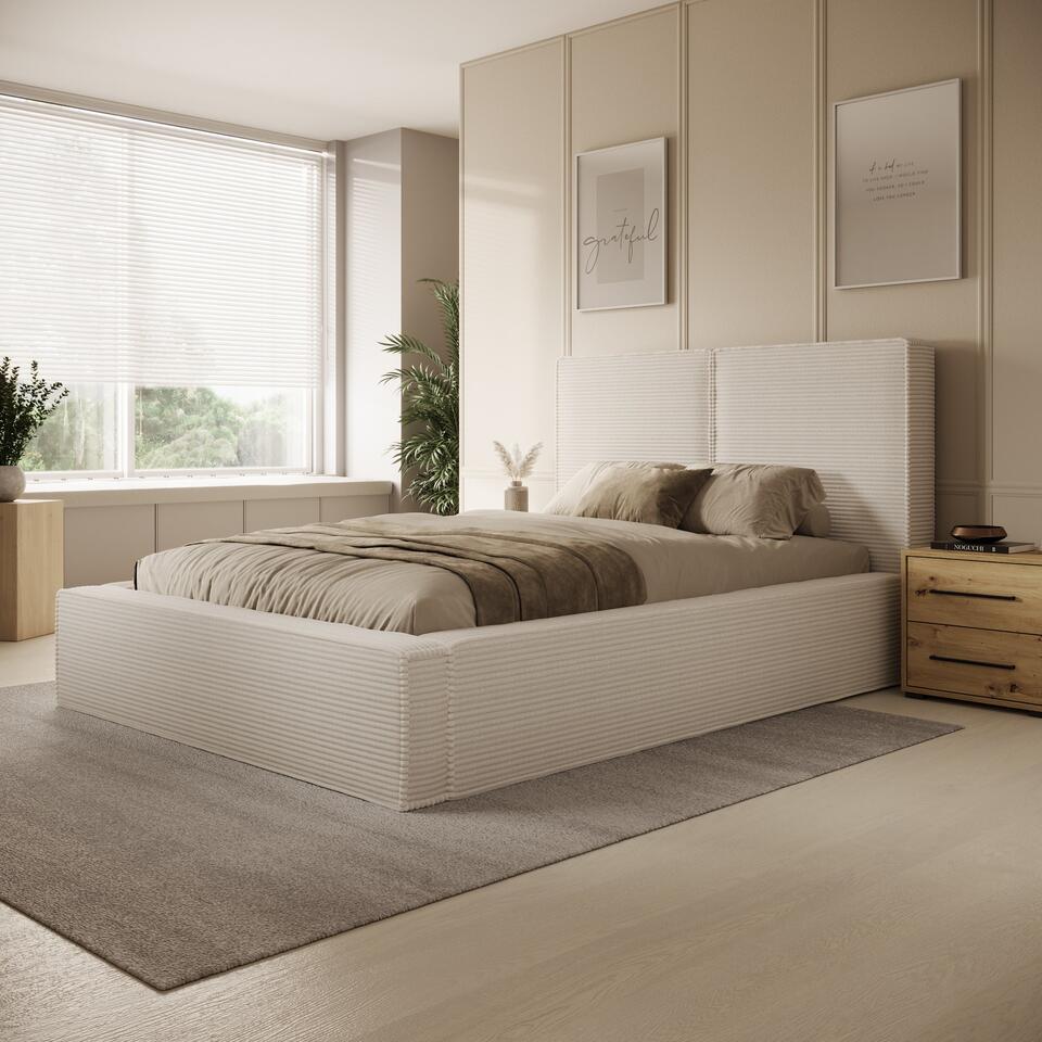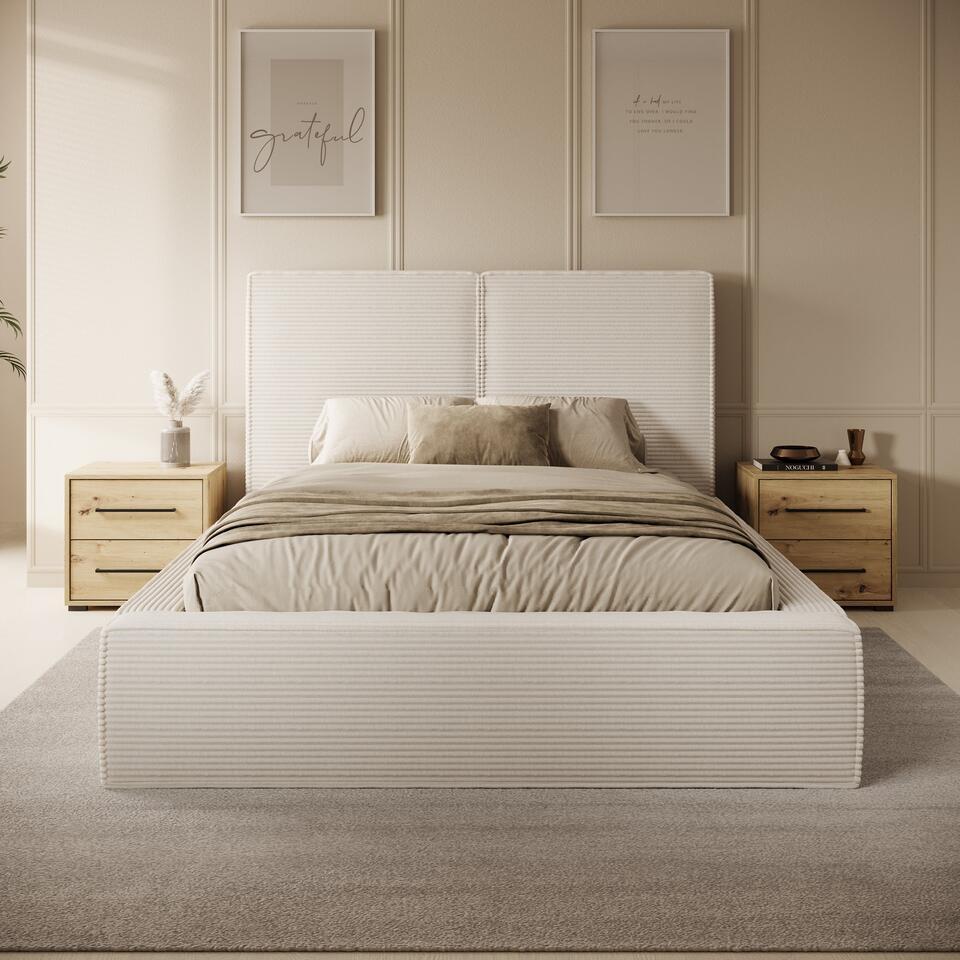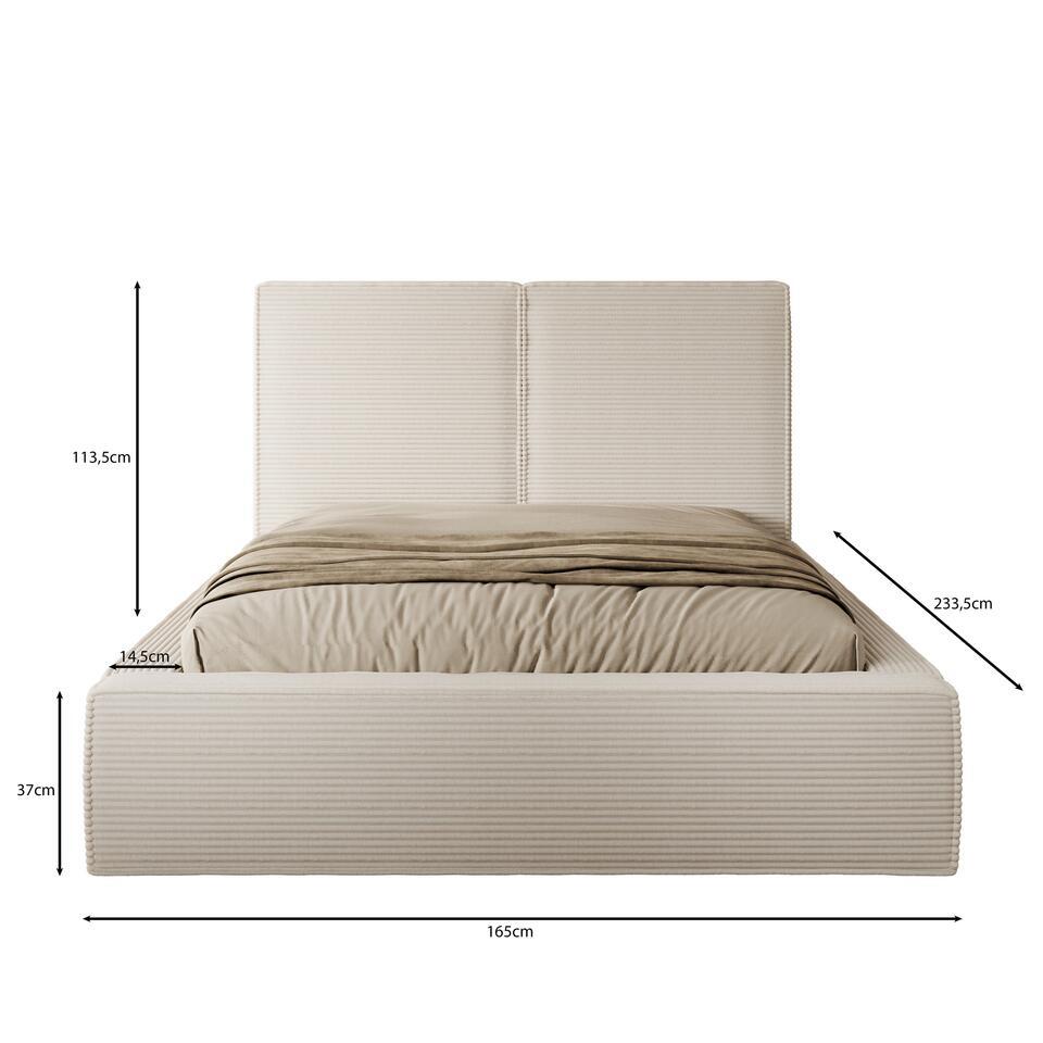 Meubella Lit double Jarviz - Tissu côtelé beige - 140 x 200 cm