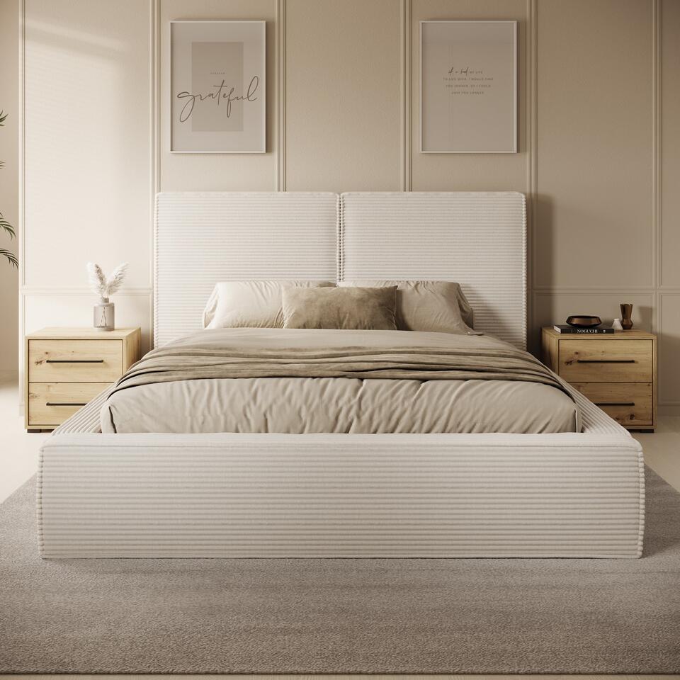 Meubella Lit double Jarviz - Tissu côtelé beige - 160 x 200 cm