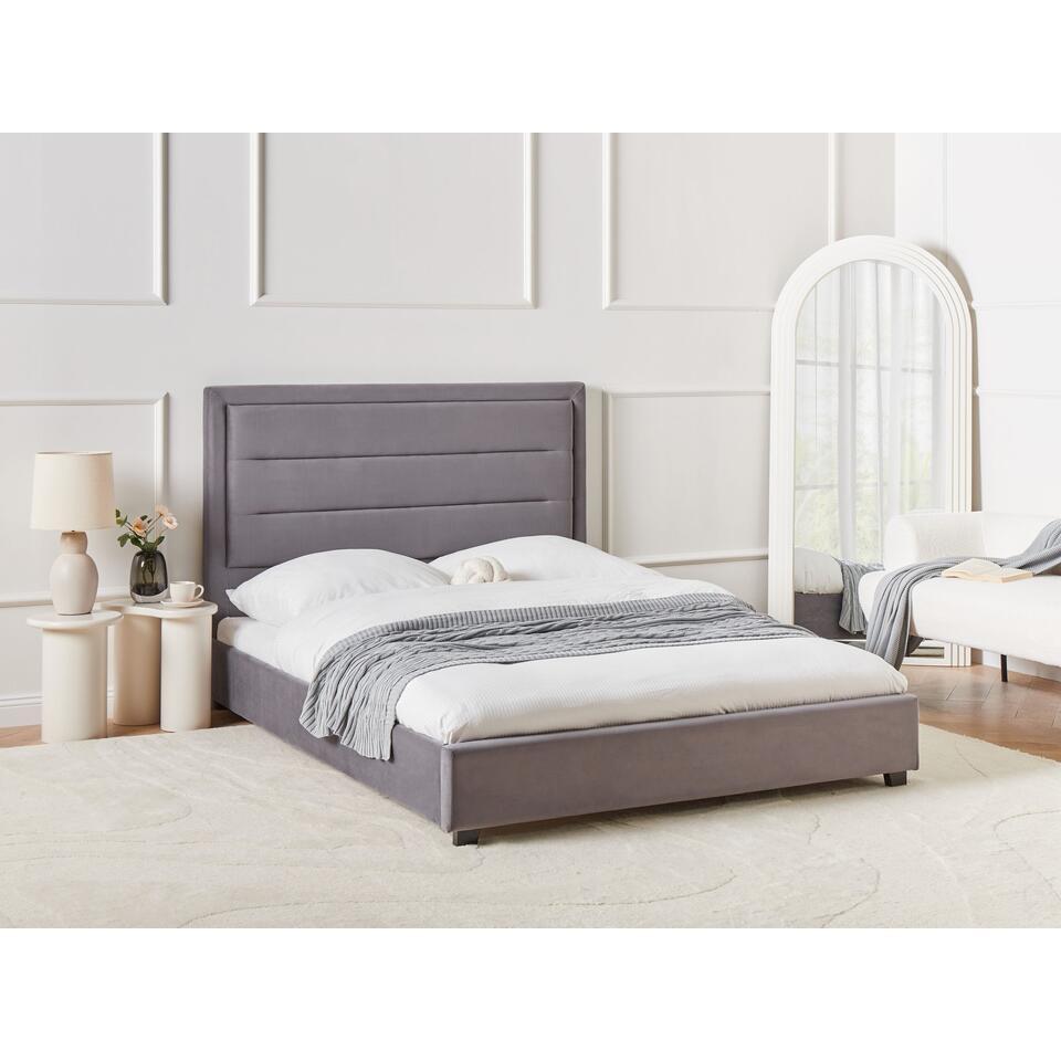 Lit avec sommier Velours ROUEN 140 x 200 cm Gris foncé