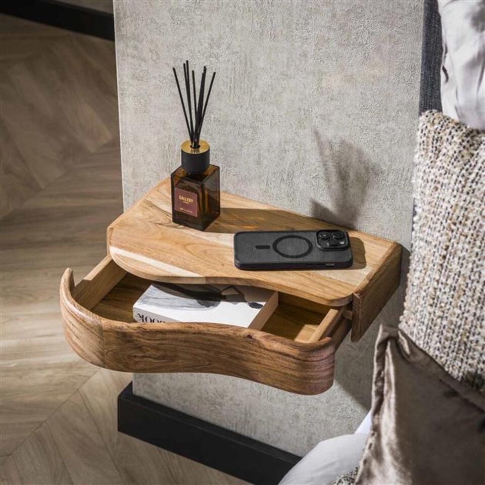 Table de chevet flottante organique – Bois d'acacia massif – Collection Hoyz