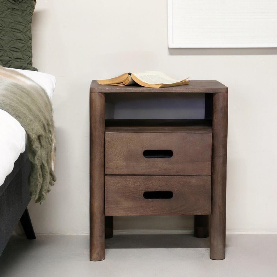 Giga Meubel Table de Nuit Doria - Bois de Manguier - Naturel - 2 Tiroirs