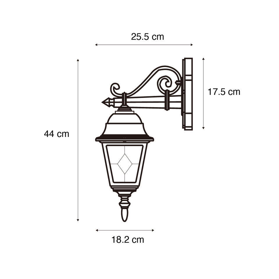 Vous recherchez une lanterne murale pour extérieur au look classique et antique? Alors l’Antigua est faite pour vous! Son design vintage orné, avec son vitrail, apportera une touche de style à votre porte d’entrée. Cette lampe murale extérieure en forme de lanterne suspendue mesure 40cm de haut, 25,5cm de profondeur et 18,2cm de large. Elle est équipée d’une grande douille E27 et est livrée sans ampoule, vous devrez donc en commander une (15watts maximum). Pour créer une ambiance cosy le soir, vous pouvez également atténuer la lumière de cette lampe (variateur non inclus). Complétez votre jardin ou votre façade avec l’Antigua!