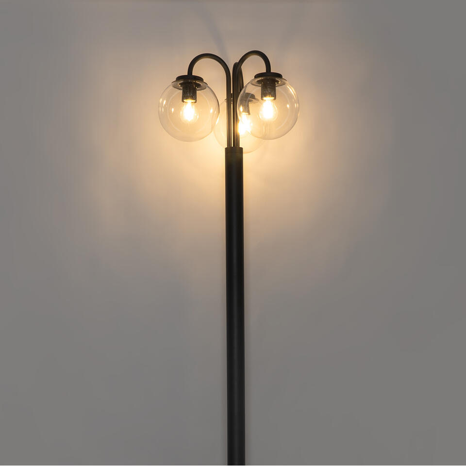 Qazqa lanterne noire avec verre clair 200 cm 3 lumières ip44 - sfera
