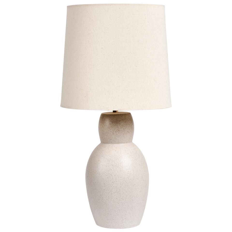 Lampe de table classique. Illuminez votre espace avec la lueur chaleureuse de cette charmante lampe de table. Dotée d'une base en céramique aux tons naturels et d'un abat-jour en lin texturé, cette lampe allie sans effort un design intemporel à une esthétique chaleureuse. Elle est parfaite pour ajouter une touche d'élégance discrète à votre salon, votre chambre ou votre entrée.