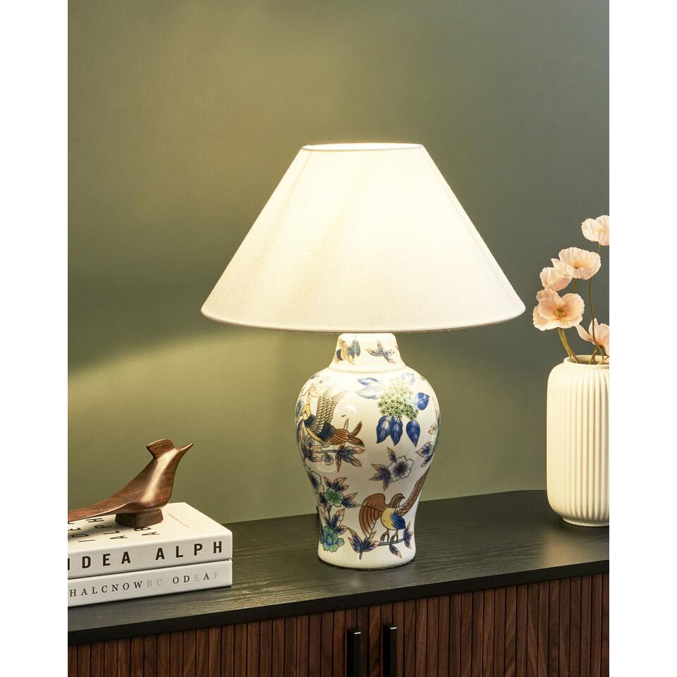 Lampe de table en porcelaine avec motif floral. Cette lampe de table est un parfait mélange de beauté et de praticité. Sa base en porcelaine durable, ornée d'un motif floral, est facile à entretenir, tandis que l'abat-jour en lin diffuse une lumière douce et accueillante, parfaite pour n'importe quelle pièce. Son charme intemporel ajoute une touche décorative à votre intérieur.