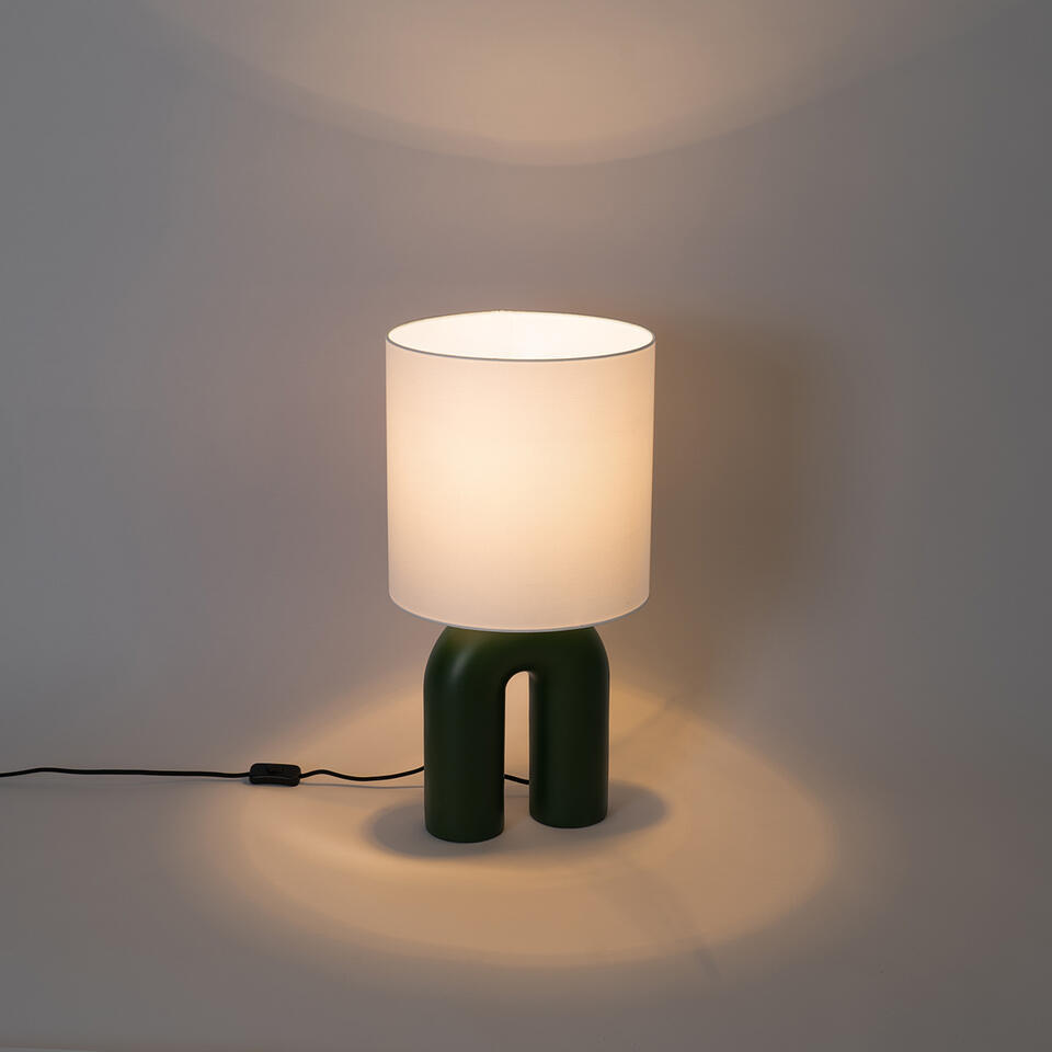 Qazqa lampe de table scandinave verte avec abat-jour en lin blanc - lotti