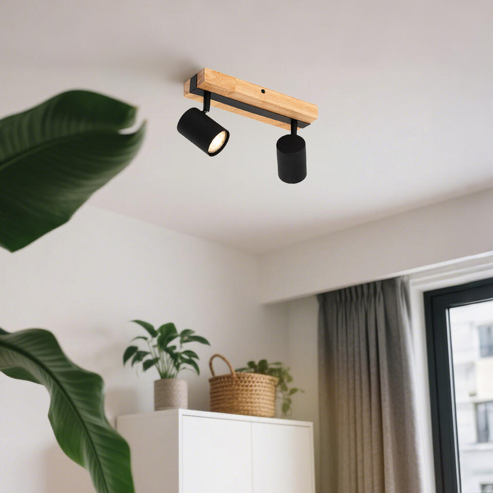Qazqa plafonnier noir avec bois 2 lumières réglables rectangulaires - jeana