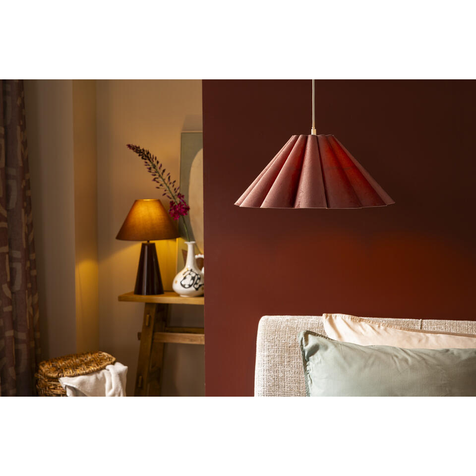 La suspension Ays est un luminaire élégant qui s’intègre parfaitement dans un intérieur moderne. Ce plafonnier contemporain est doté d’un abat-jour rose en forme de trompette raffinée : plus étroit sur le dessus et plus large vers le bas. Cette forme assure une diffusion dirigée de la lumière vers le bas, idéale pour illuminer la table à manger de façon chaleureuse.