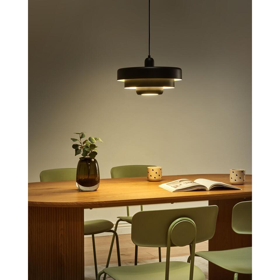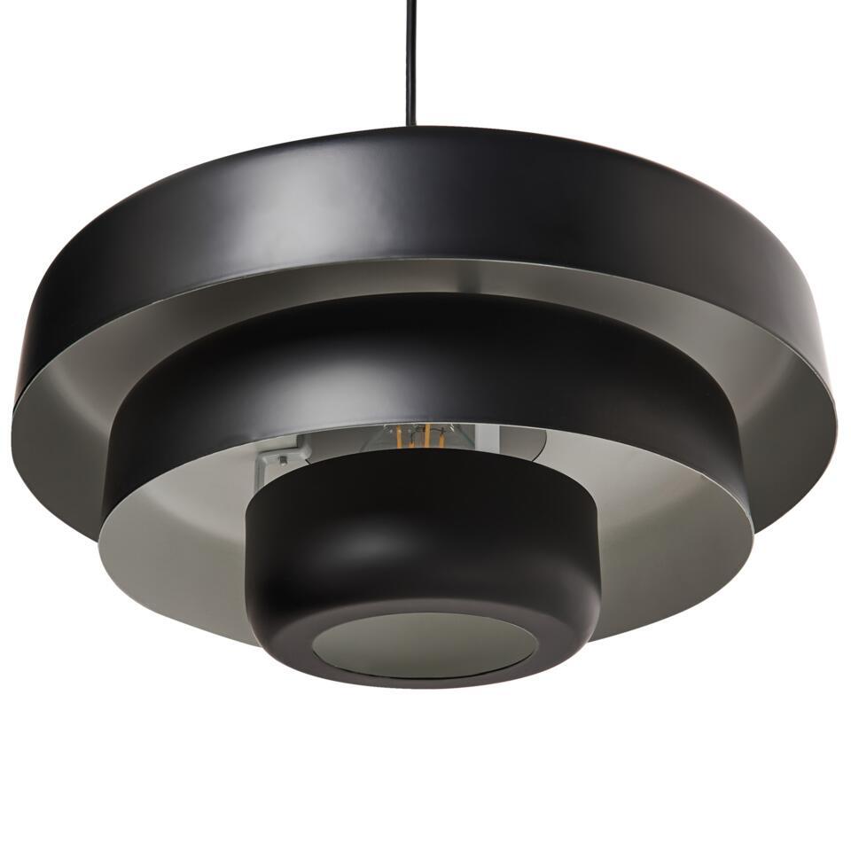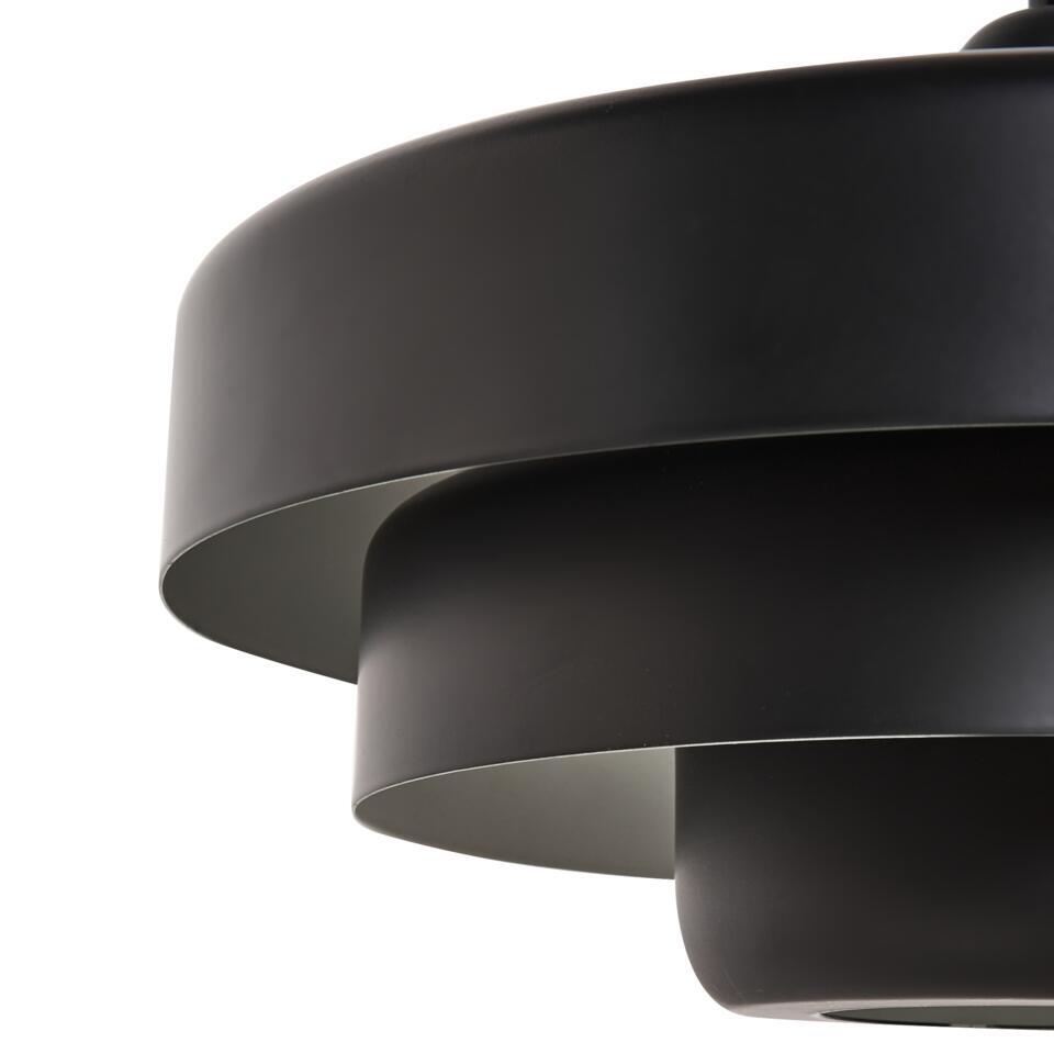 Lampe suspendue moderne. Cette lampe suspendue apporte une touche élégante et moderne à votre espace grâce à son design sculptural en couches et à sa finition noire mate. Elle est parfaite pour ajouter une touche audacieuse mais raffinée au-dessus de la table à manger ou dans le couloir. Ses courbes douces et son aspect discret lui permettent de s'intégrer facilement dans des intérieurs contemporains ou du milieu du siècle.